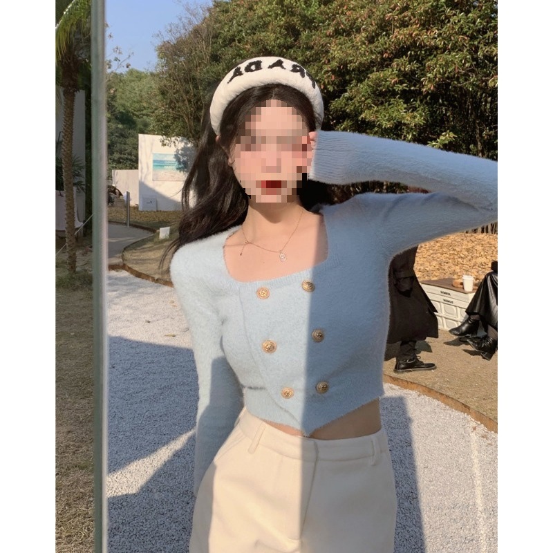 작은 여성을위한 모조 밍크 벨벳 부드러운 왁스 니트베이스 셔츠 가을과 겨울 느슨한 두꺼운 마헤어 탑 짧은 스웨터