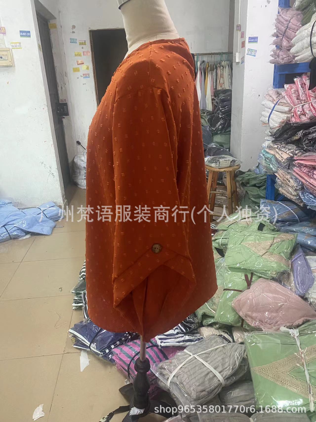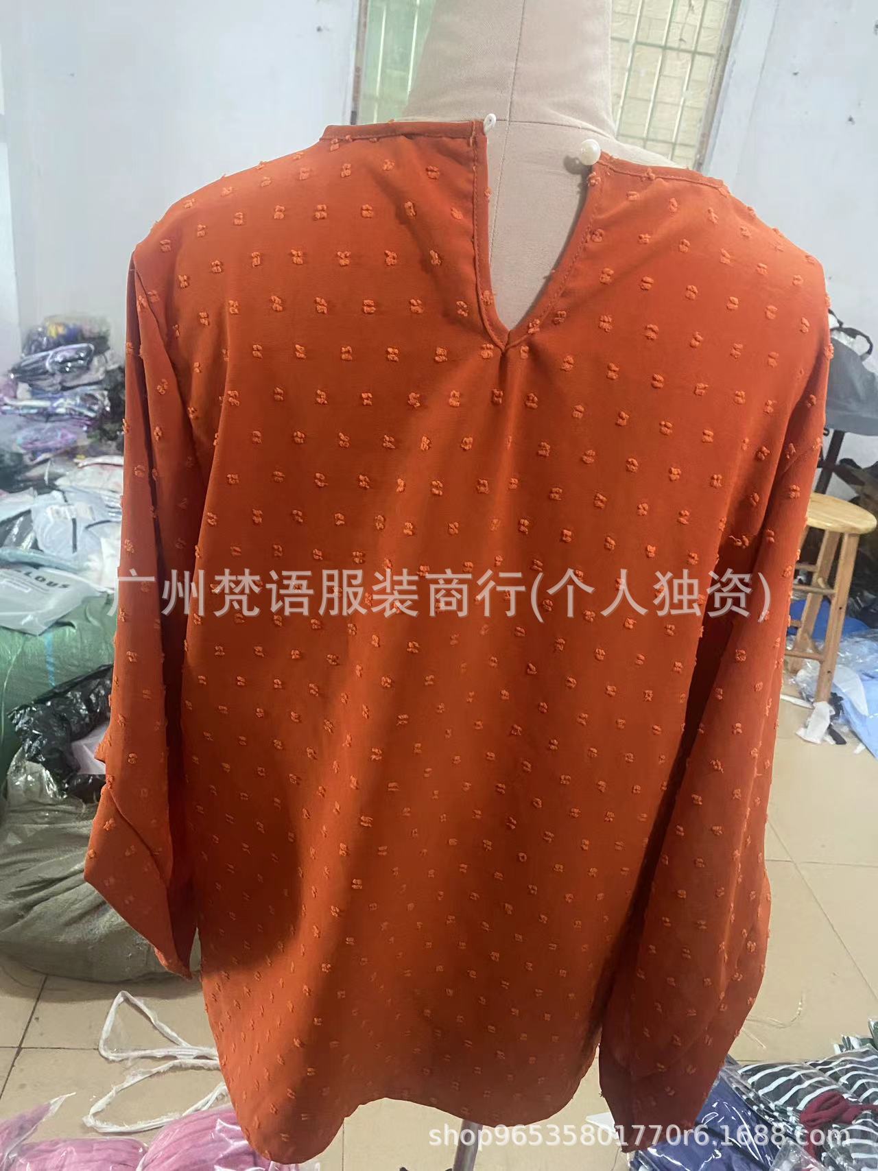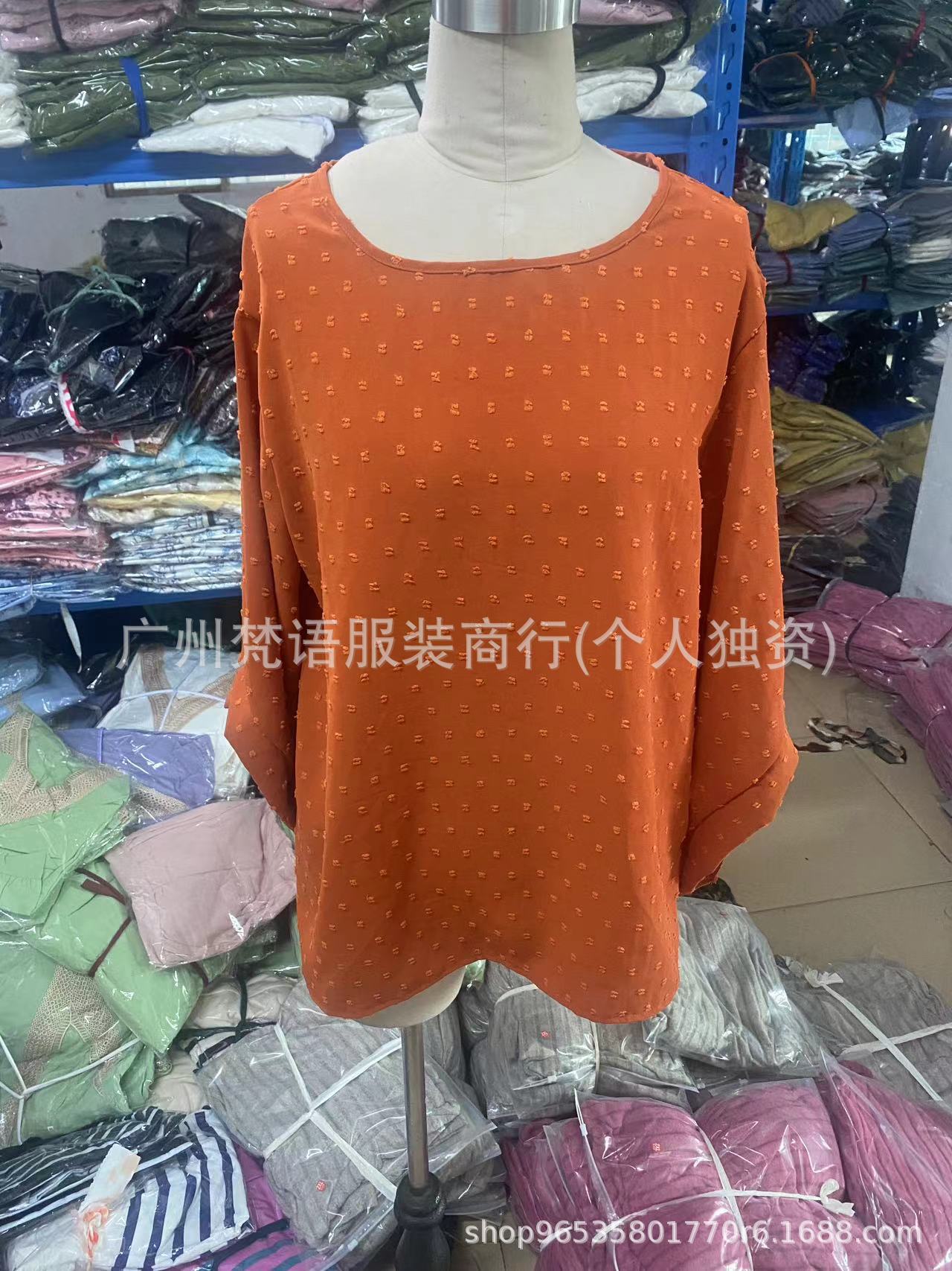 2024 유럽과 미국 국경 아마존 여성 라운드 넥 7 소매 쉬폰 셔츠 패션 편안한 탑 티셔츠스토어 가기