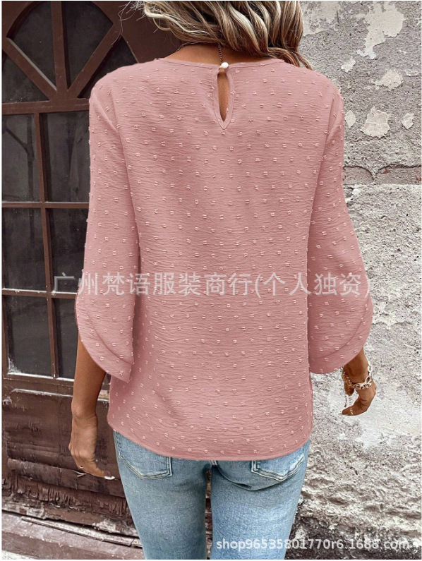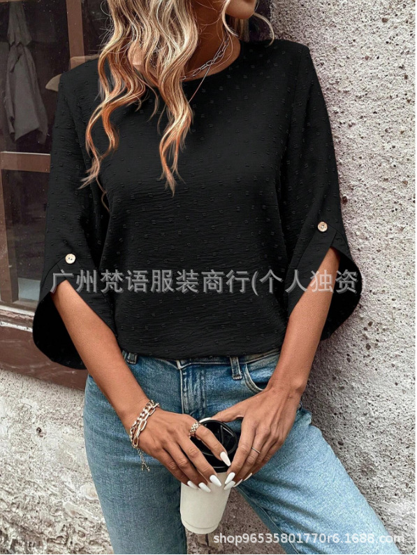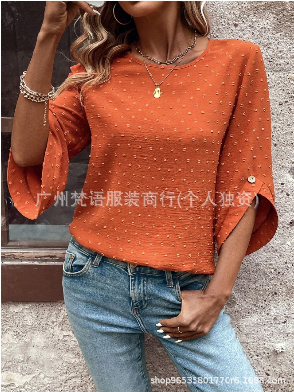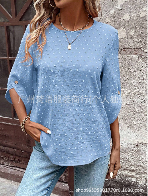 2024 유럽과 미국 국경 아마존 여성 라운드 넥 7 소매 쉬폰 셔츠 패션 편안한 탑 티셔츠