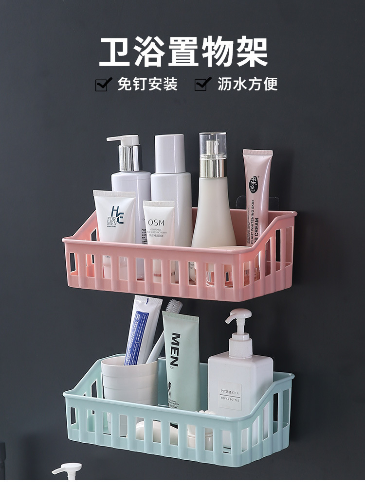 주방 플라스틱 보관 랙 펀치없는 화장실 보관 랙 화장실 벽 교수형 화장실 보관 상자스토어 가기