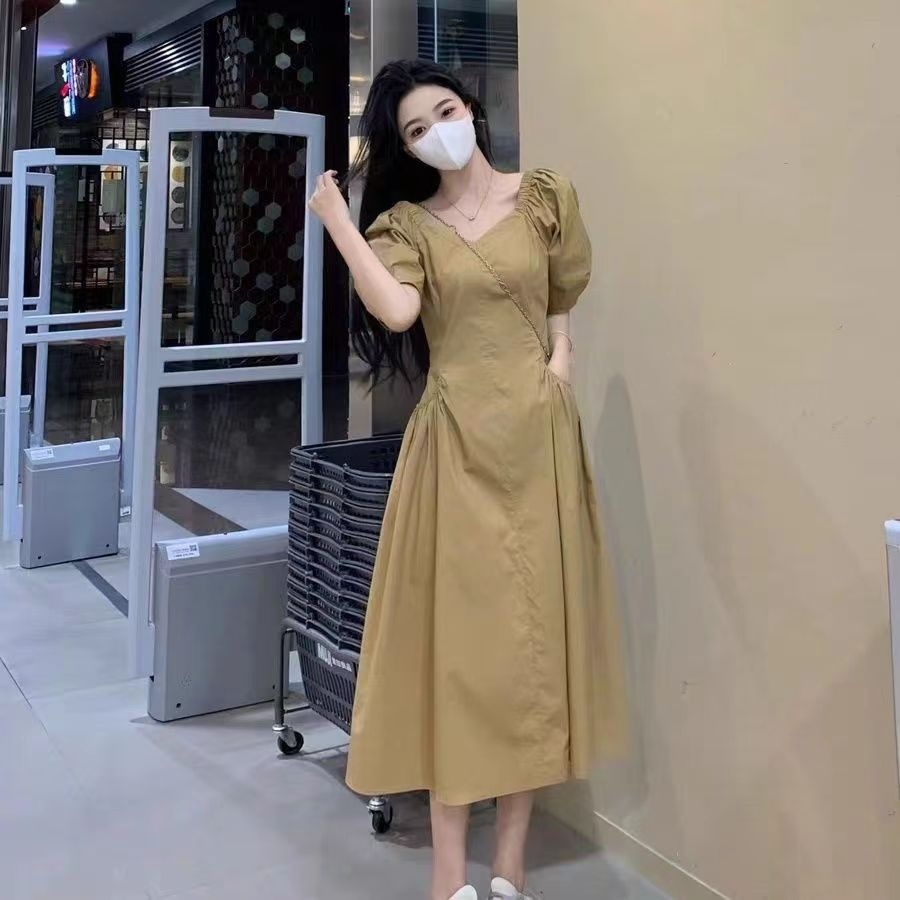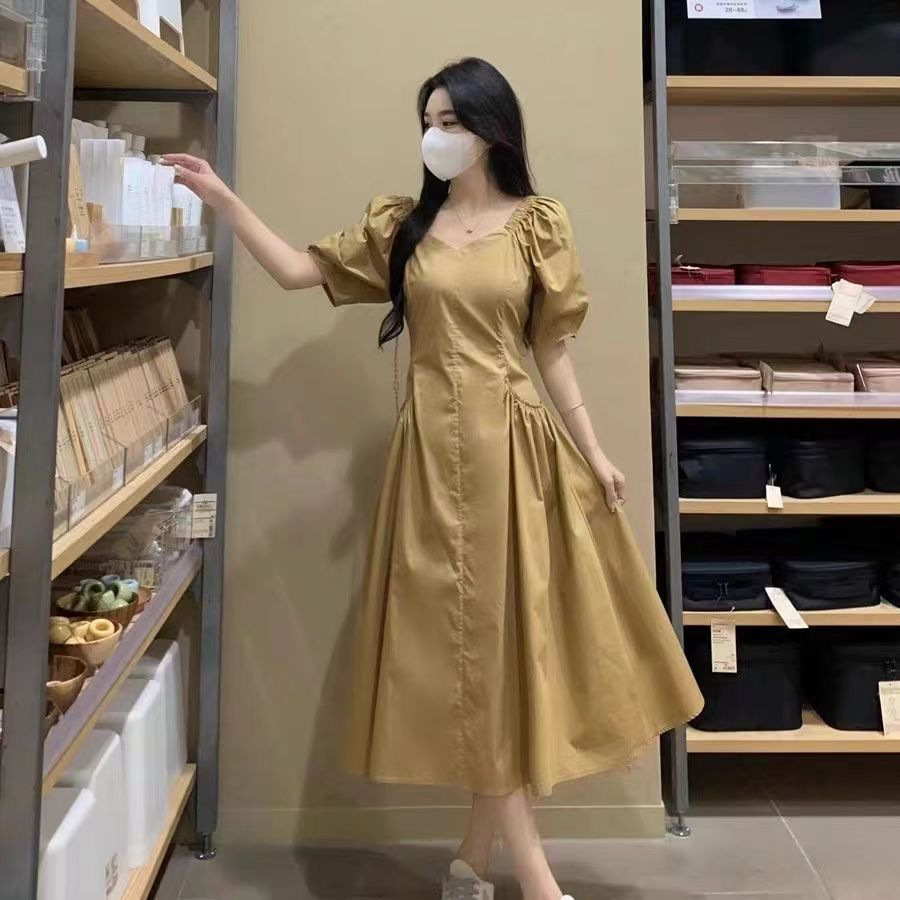 2024 새로운 도파민 배꼽 덮은 원피스 여름 2024 어린이를위한 새로운 배 모양의 반팔 치마스토어 가기