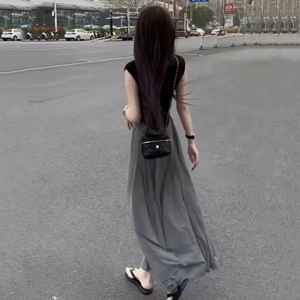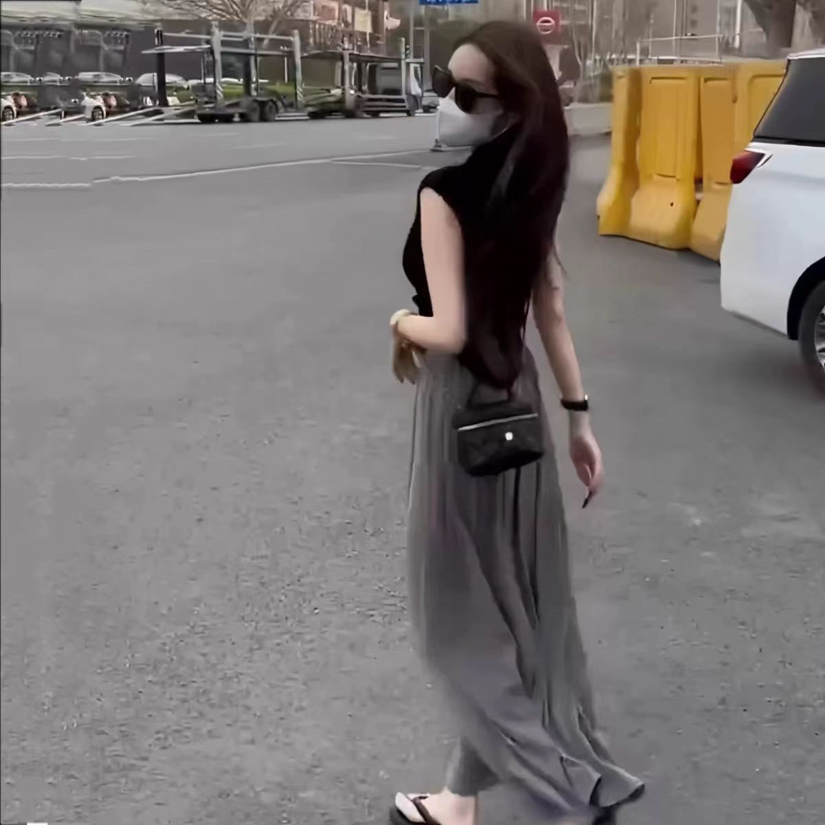 새로운 피핑 긴 스커트 발목 스커트 캐주얼 높은 허리 슬리밍 세트 스커트 무릎 긴 여성 스커트 여름스토어 가기