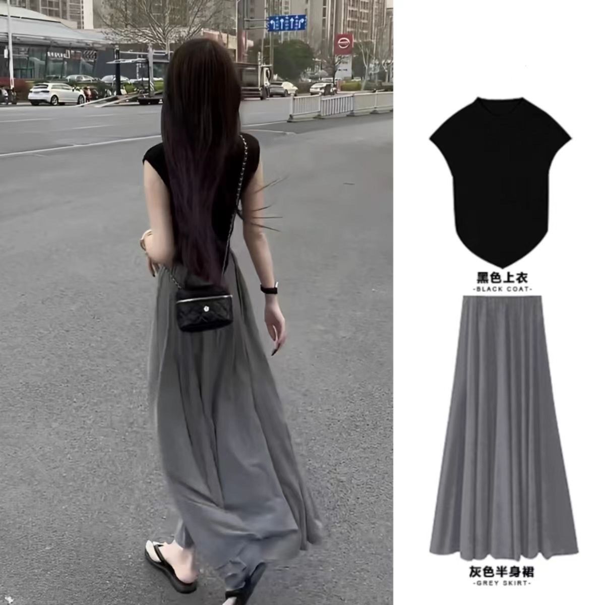 새로운 피핑 긴 스커트 발목 스커트 캐주얼 높은 허리 슬리밍 세트 스커트 무릎 긴 여성 스커트 여름