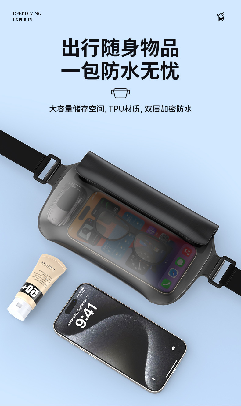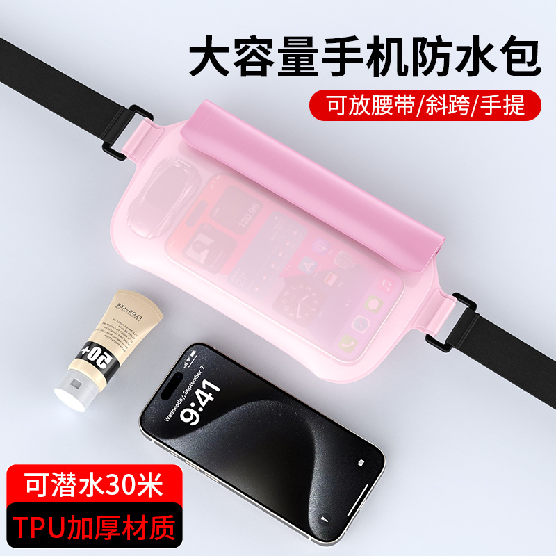 수영 휴대 전화 방수 허리 가방 다이빙 터치 스크린 TPU 대용량 허리 가방 실행 다기능 휴대 전화 방수 가방 커버스토어 가기