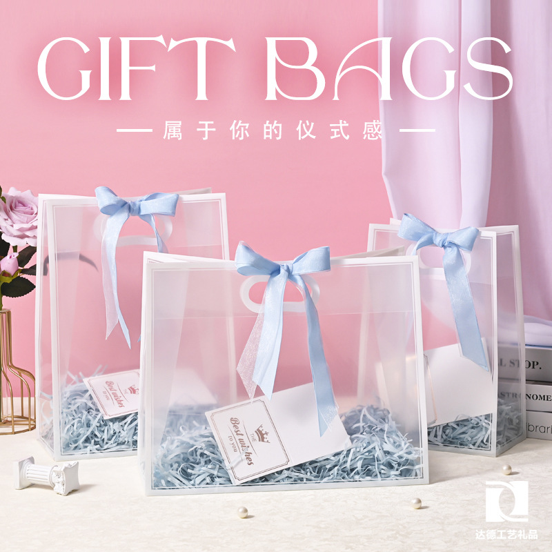 투명 pp 그물 붉은 젖빛 토트 백 선물 포장 가방 웨딩 캔디 플라스틱 토트 백 맞춤형 인쇄 로고스토어 가기