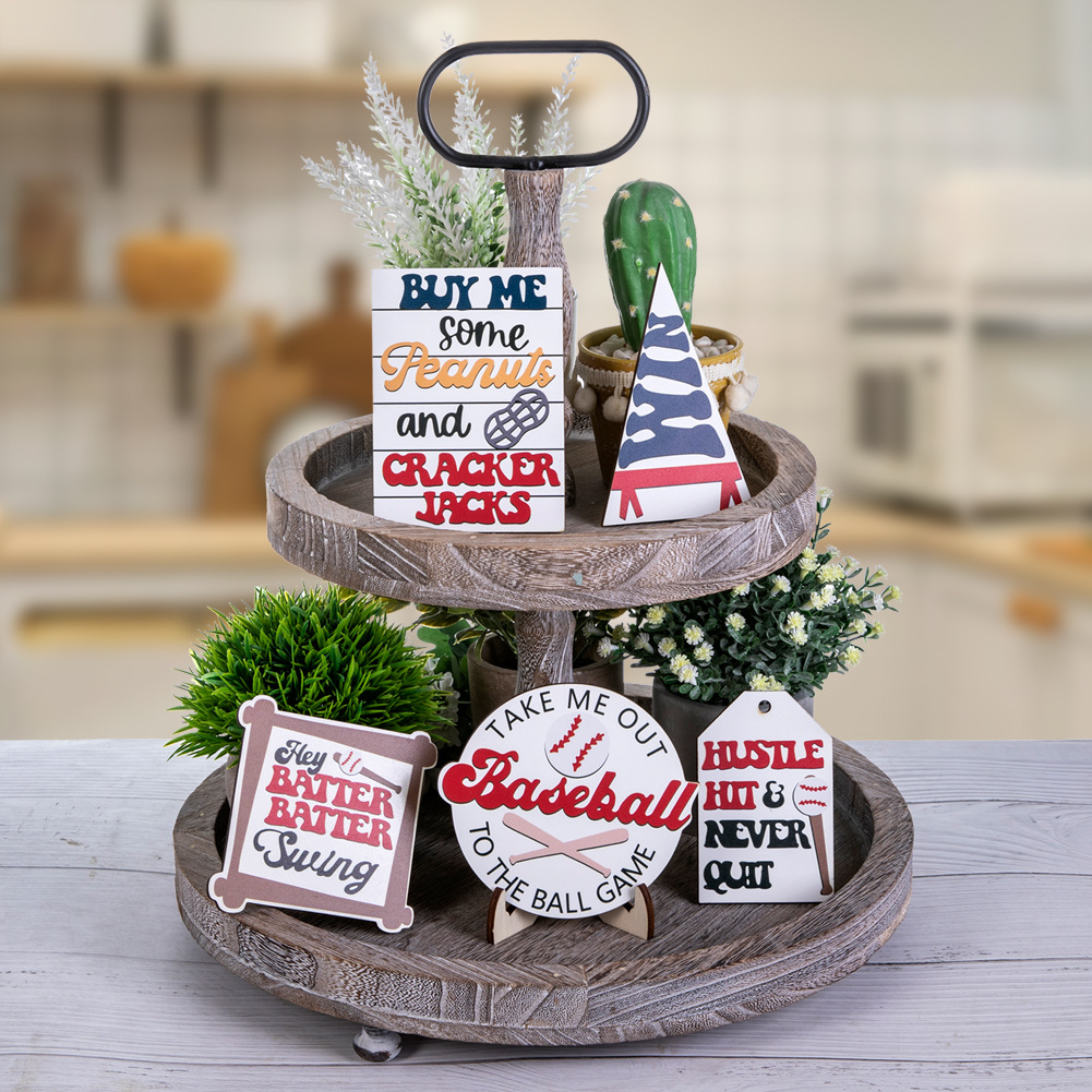 국경 간 미국 야구 테마 나무 장식품 파티 용품 미니 장면 레이아웃 홈 데스크탑 트레이 장식