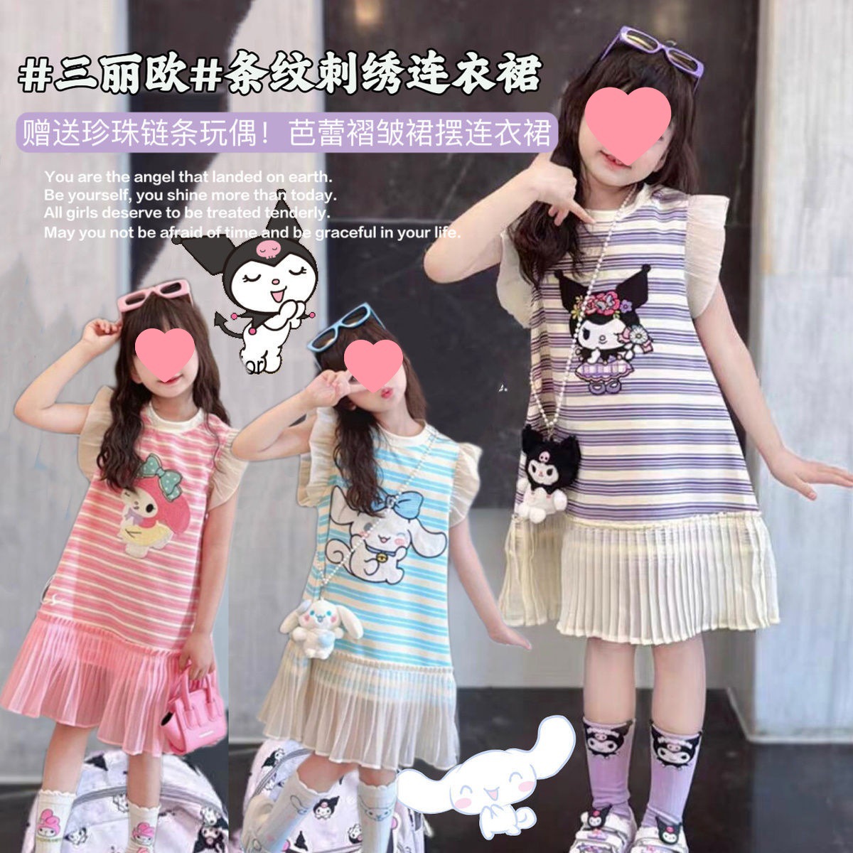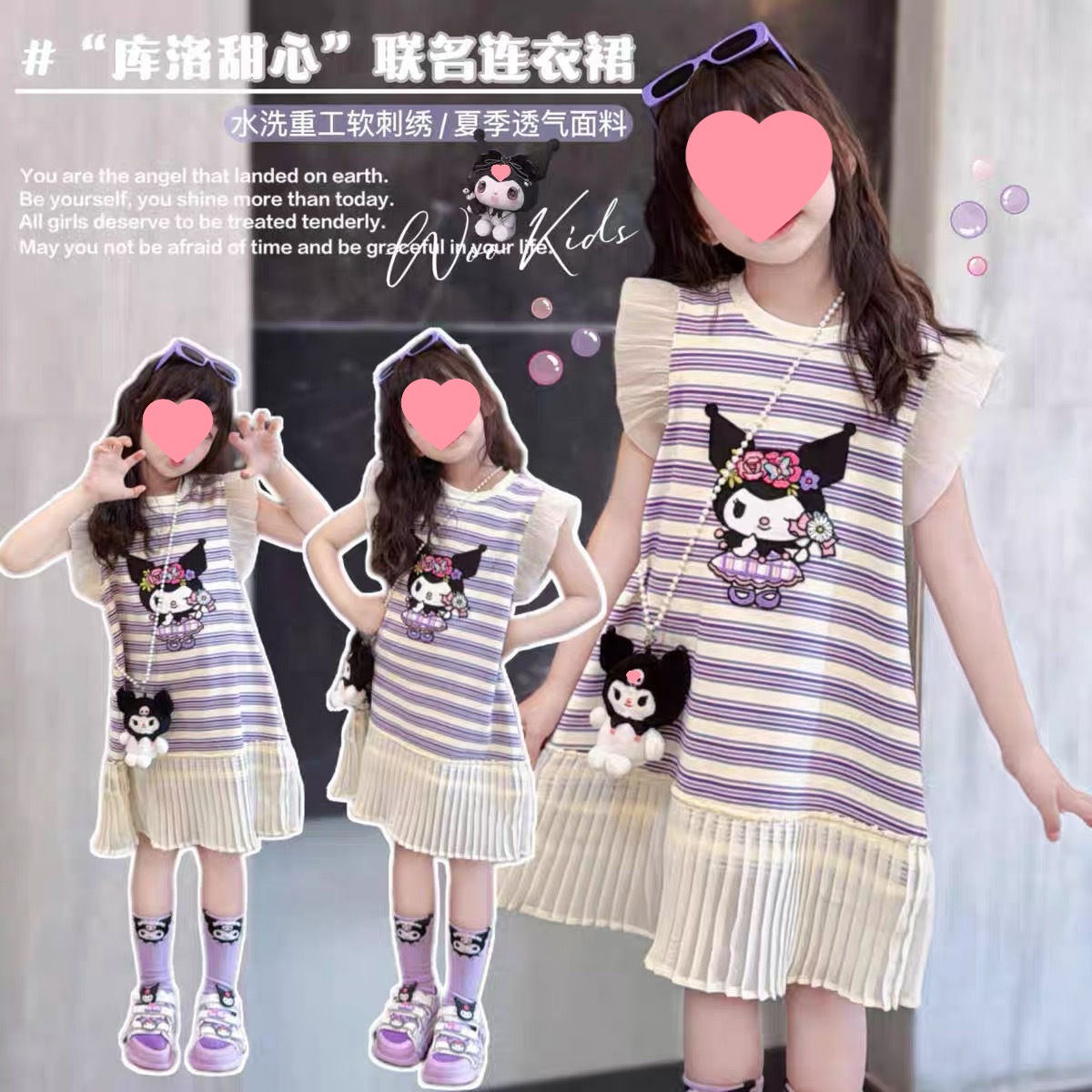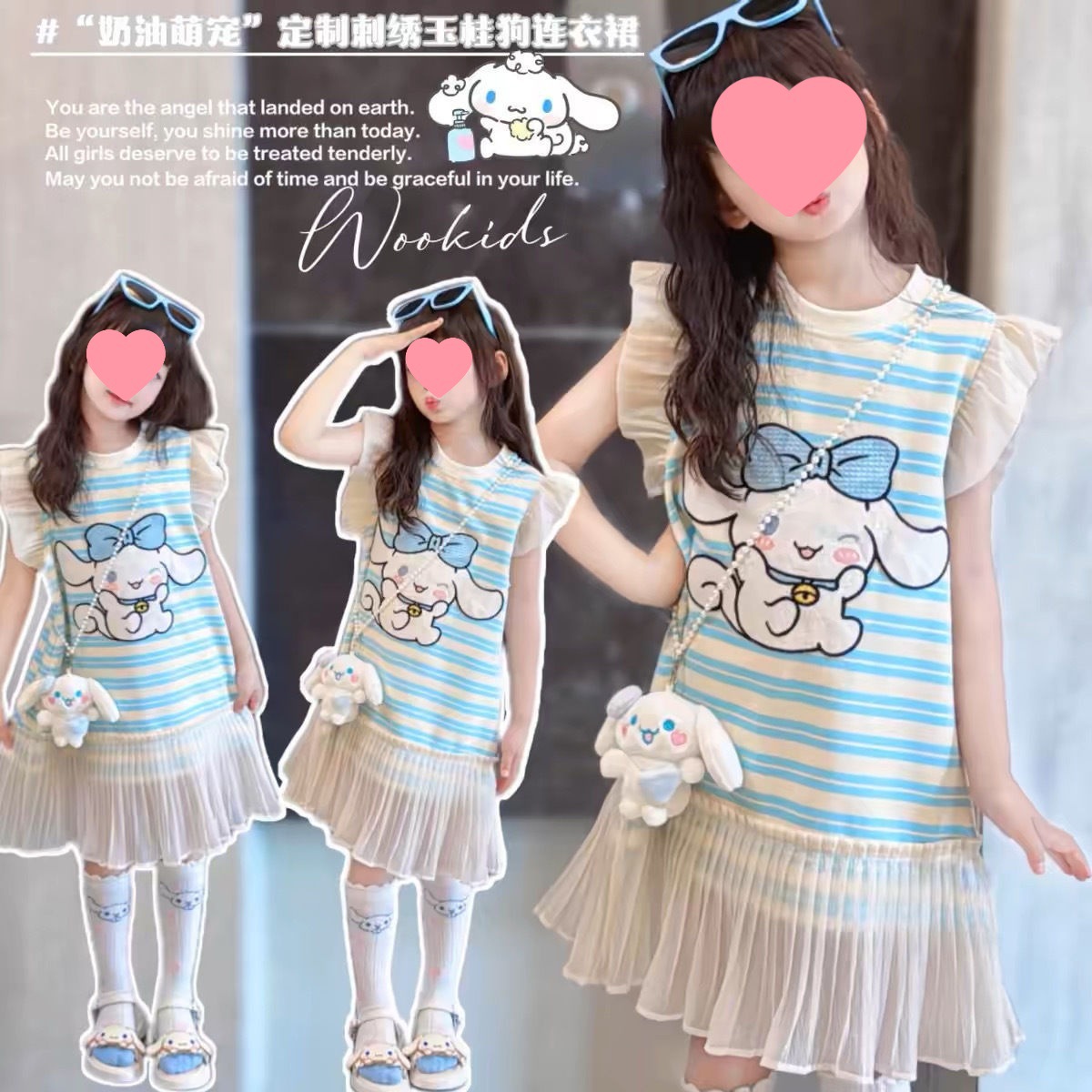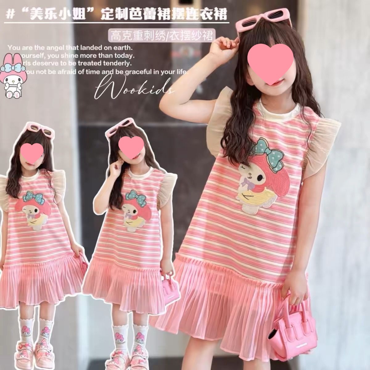한국 스타일 아기 소녀 만화 원피스 큰 키즈 여름 새로운 격자 무늬 메쉬 유행 짧은 소매 공주 원피스스토어 가기
