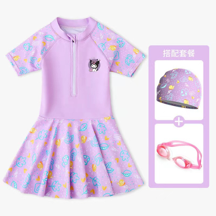 • 보라색 원피스 수영 모자 고글 [안전 바지 보내기]]