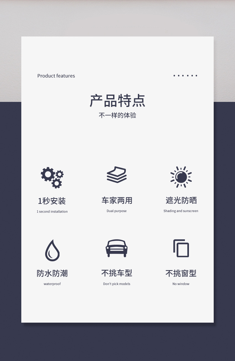 • 새롭게 업그레이드된 차양 방수 80cm(180±5cm까지 늘어날 수 있음) [흡착컵 6개/쌍