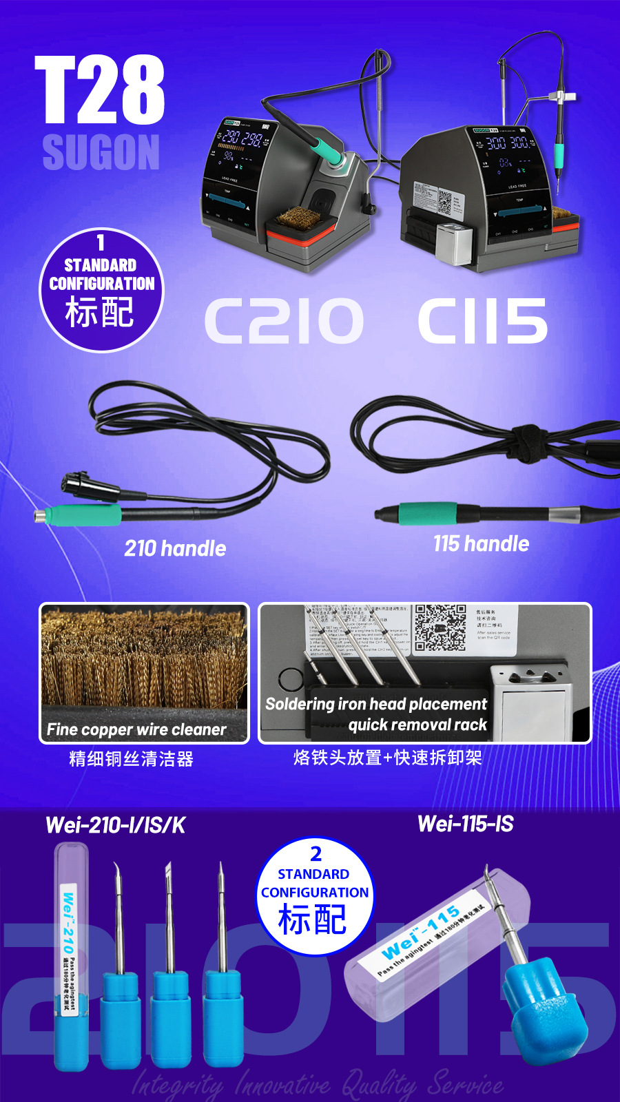 1.这个焊接站可以使用T115/T210手柄和C210/C115加热芯,可立即提起并使用。