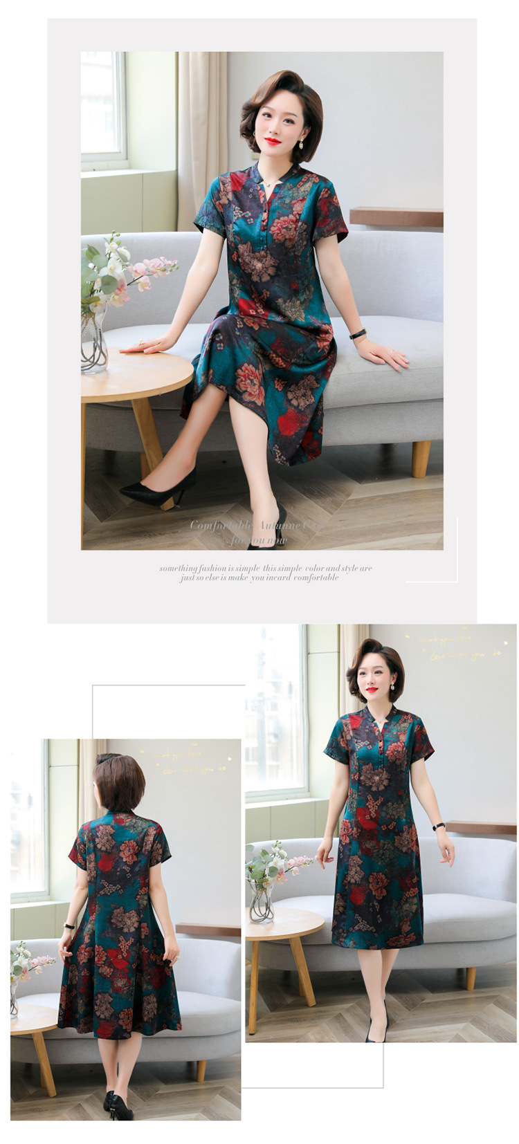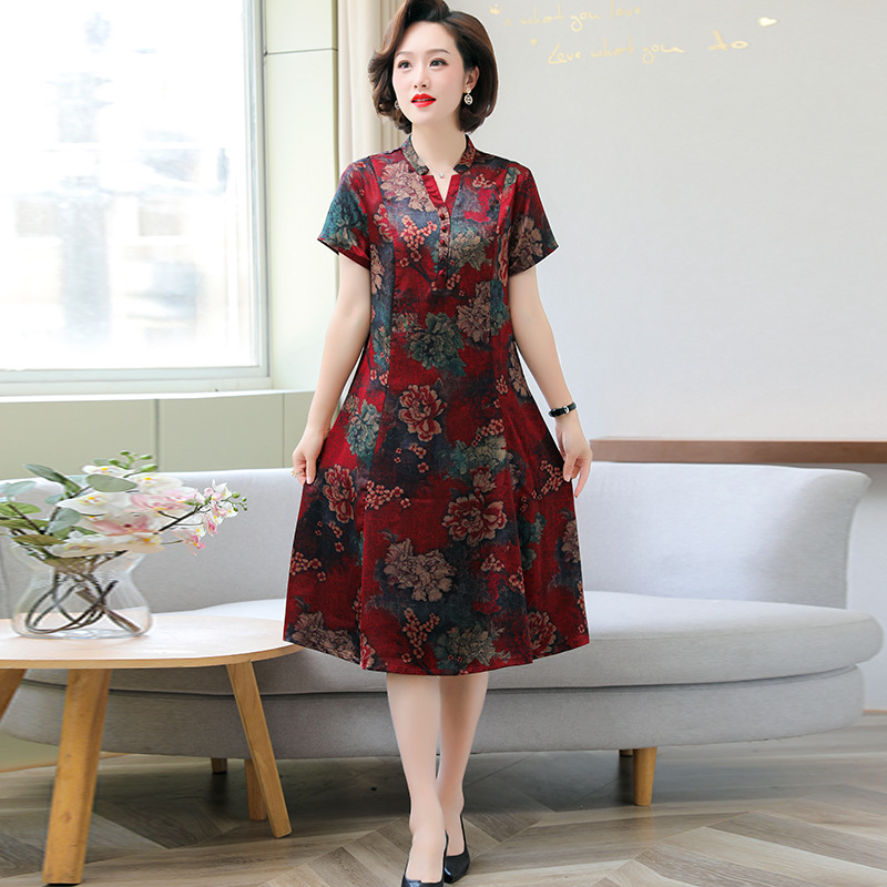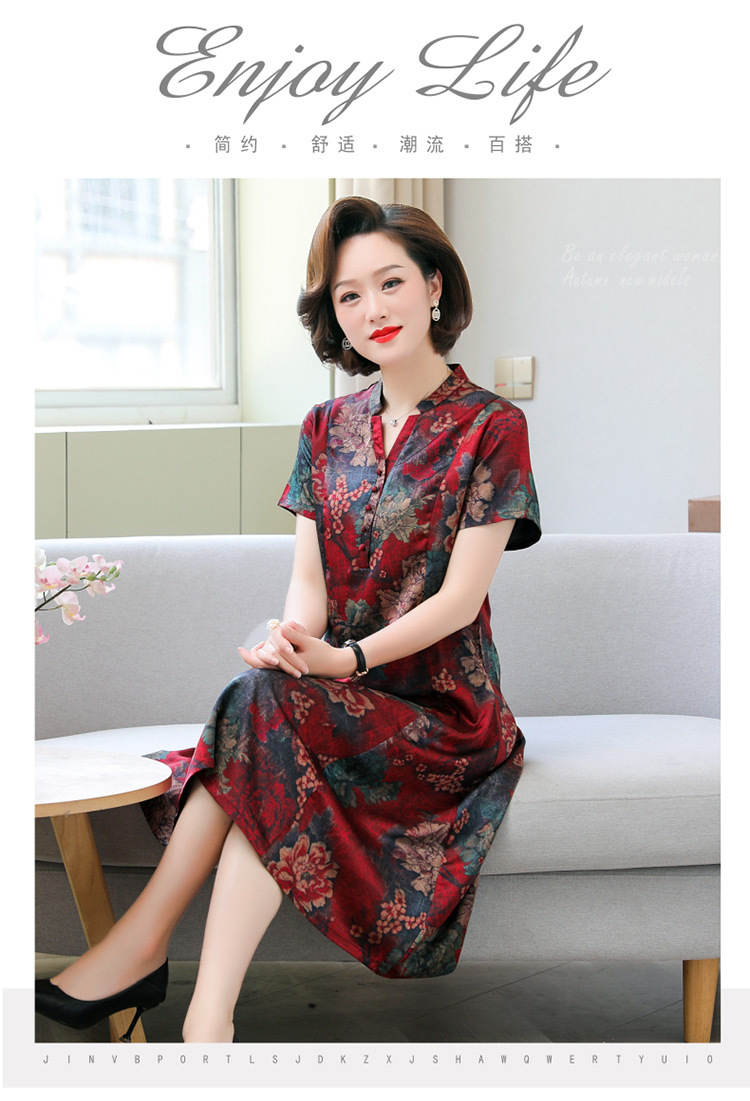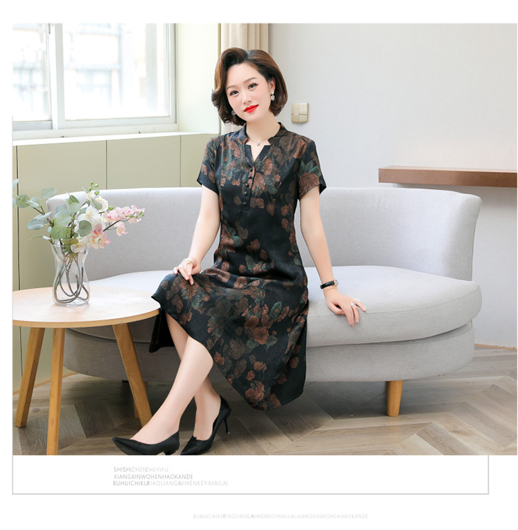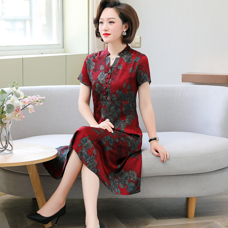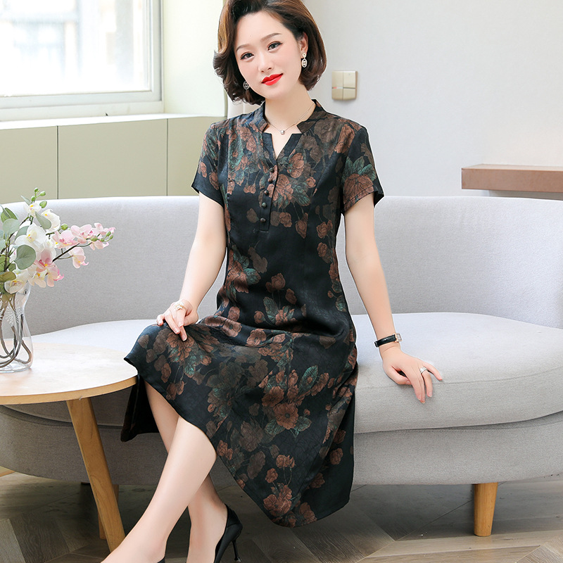 무거운 실크 Xiangyun 원사 원피스 여성 플러스 사이즈 여름 새로운 하이 엔드 인쇄 멀 베리 실크 벨리 커버 무릎 스커트
