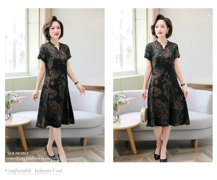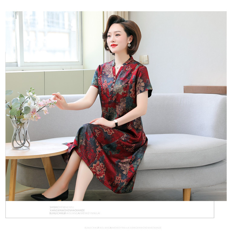 헤비 실크 향운사 원피스 여성용 대형 사이즈 여름 신상 고급 프린트 실크 배를 가리는 무릎 아래 중간 길이 드레스스토어 가기