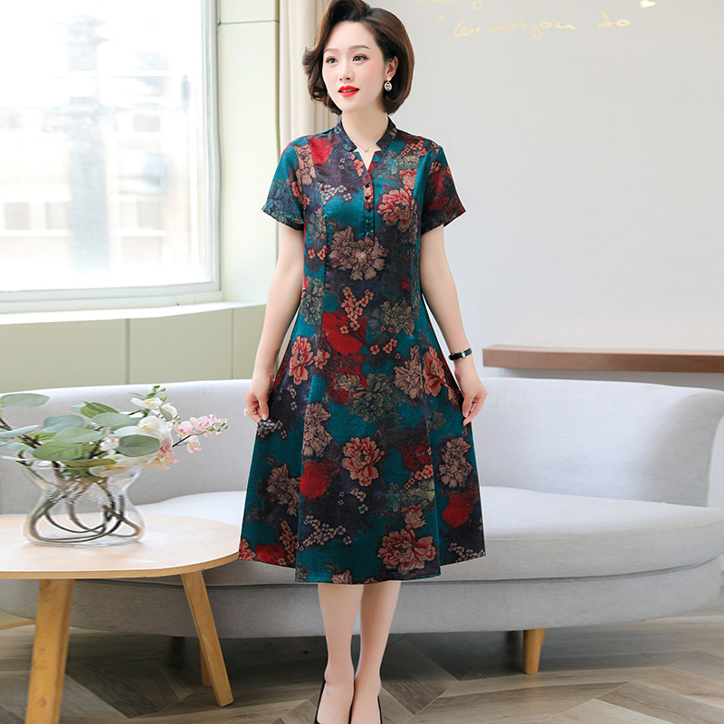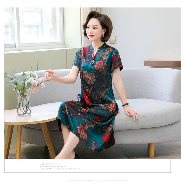 무거운 실크 Xiangyun 원사 원피스 여성 플러스 사이즈 여름 새로운 하이 엔드 인쇄 멀 베리 실크 벨리 커버 무릎 스커트스토어 가기