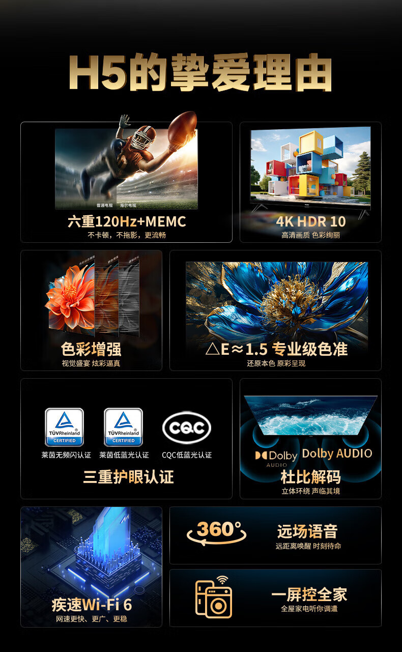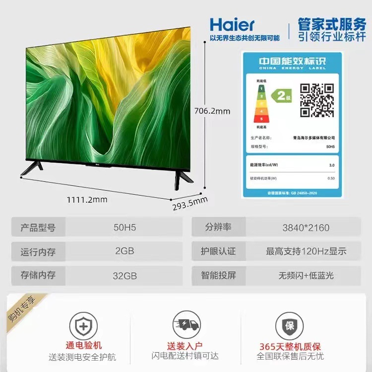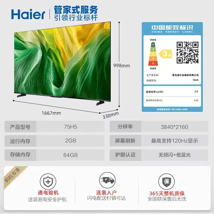 하이얼 H5 65/55/50/75 인치 120Hz 높은 브러시 눈 보호 4k 지능형 네트워크 거실 LCD TV스토어 가기