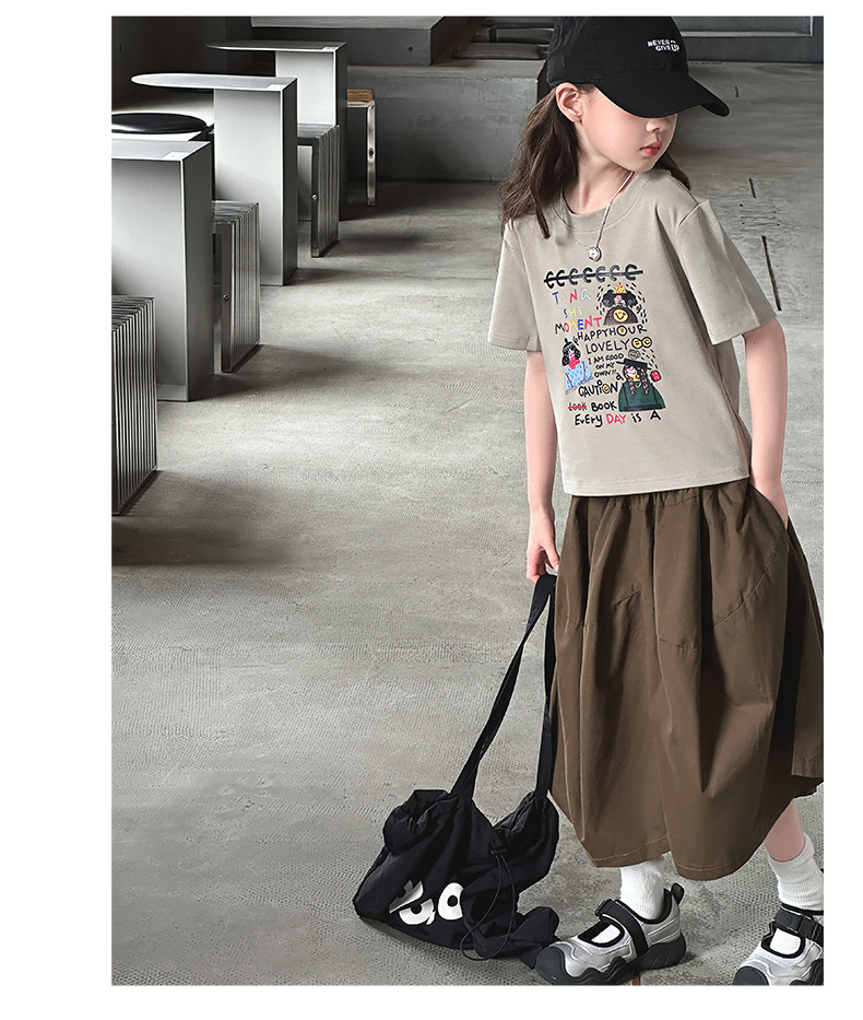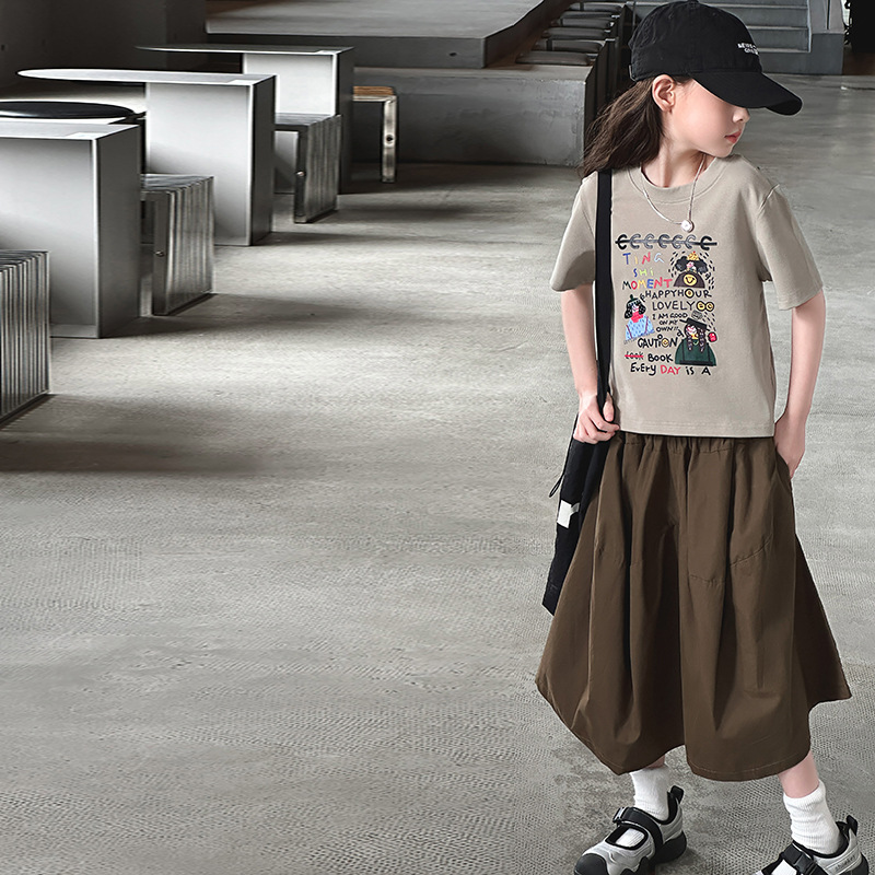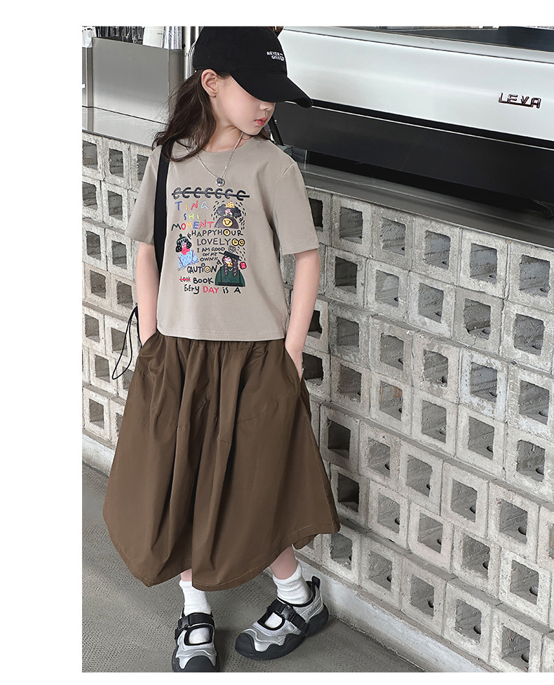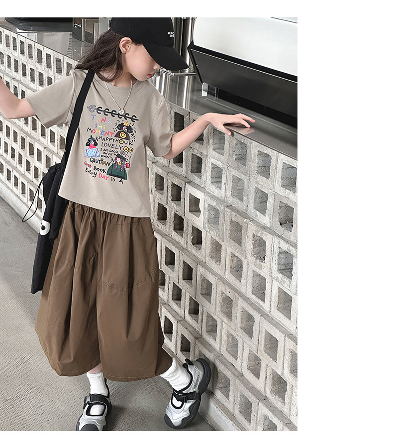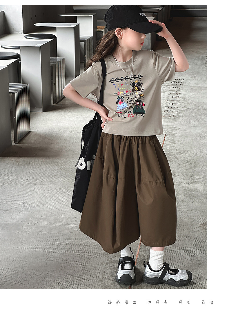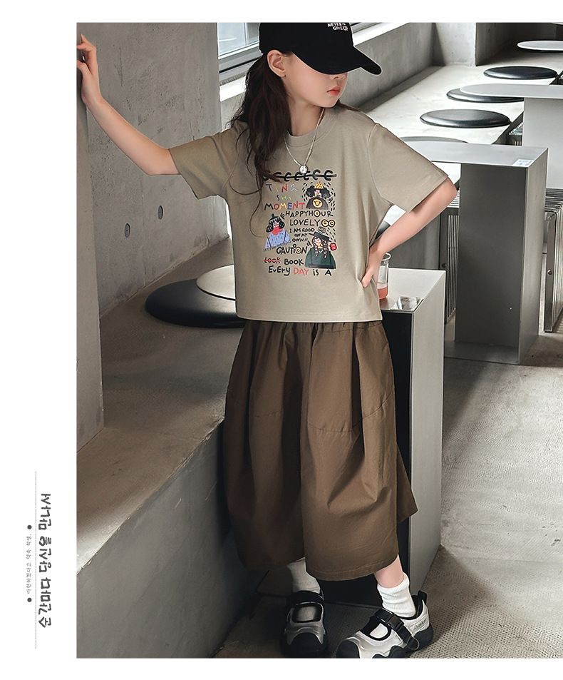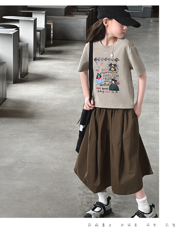 여자 여름 세트 2024 새로운 어린이 유행 서양식 여름 원피스 어린이 반팔 티셔츠 와이드 레그 바지 투피스 세트스토어 가기