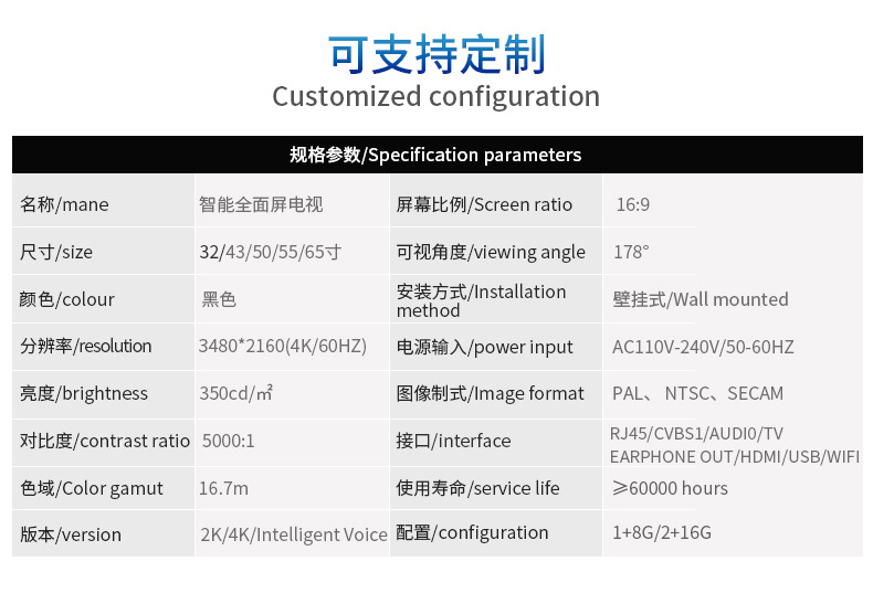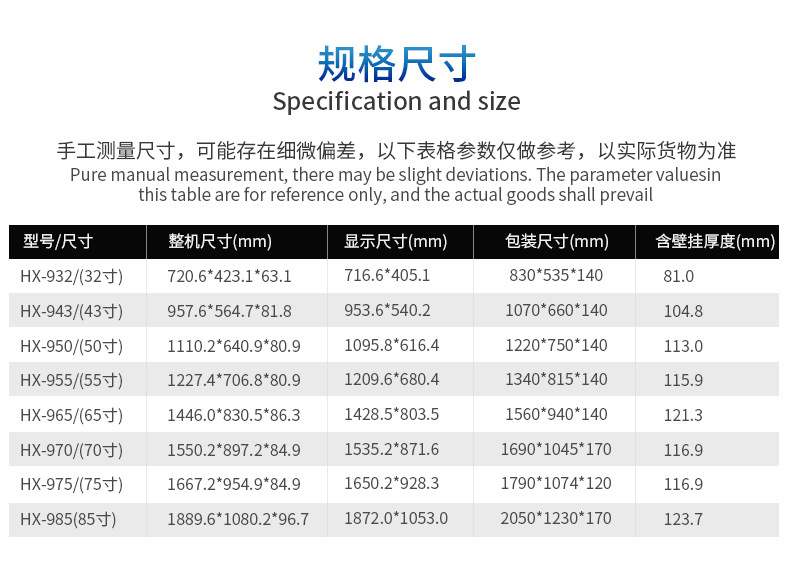 • 55inch 지능형 음성 버전(1229.9*709.6*66.8mm)