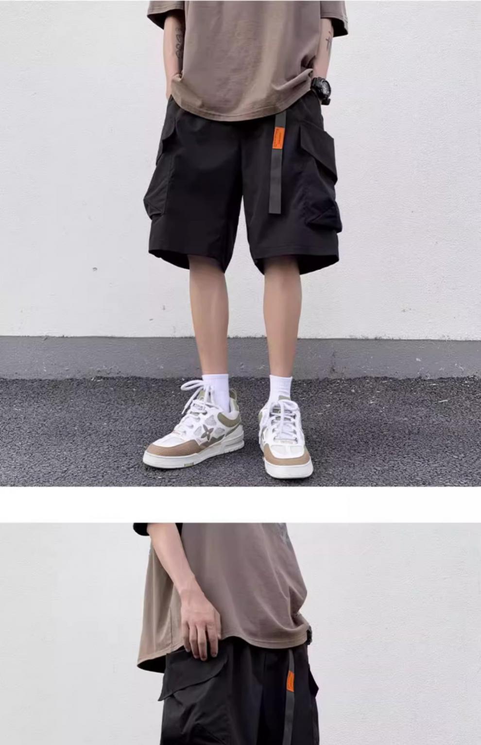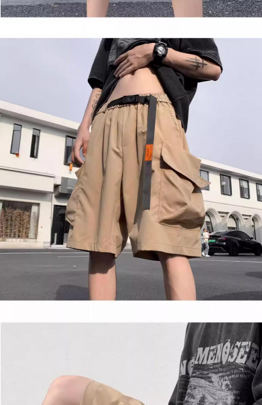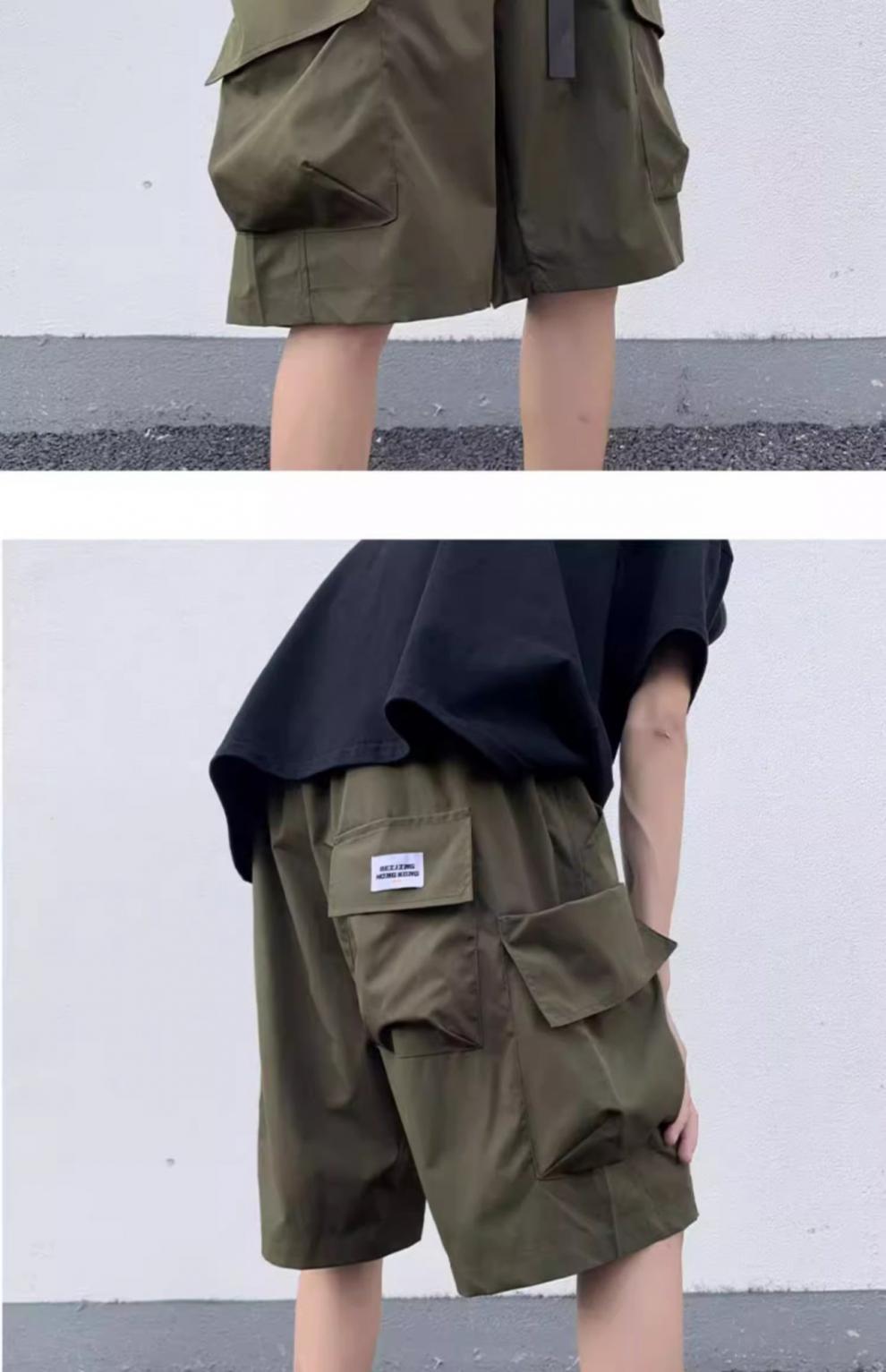 기능성 단색 포켓 툴링 반바지 남성 여름 얇은 느슨한 캐주얼 바지 미국 스타일 남성 5-바지스토어 가기