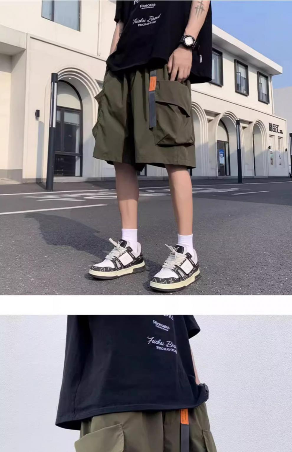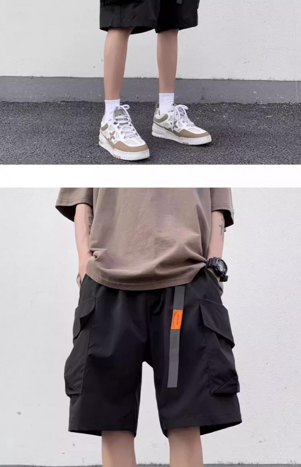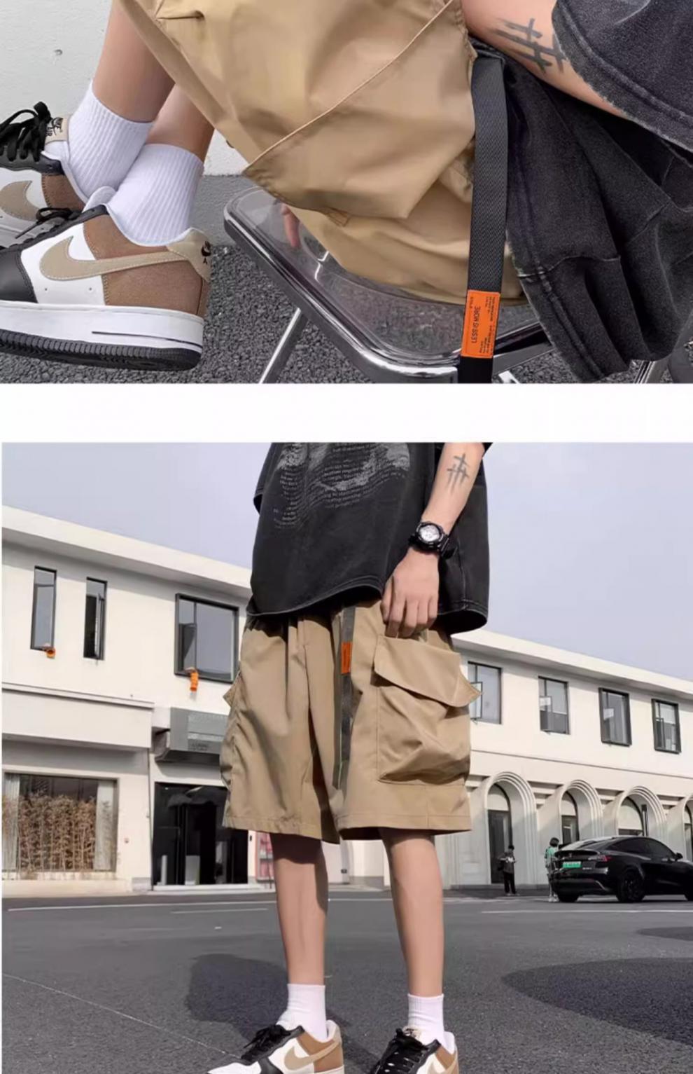 기능성 단색 포켓 툴링 반바지 남성 여름 얇은 느슨한 캐주얼 바지 미국 스타일 남성 5-바지스토어 가기