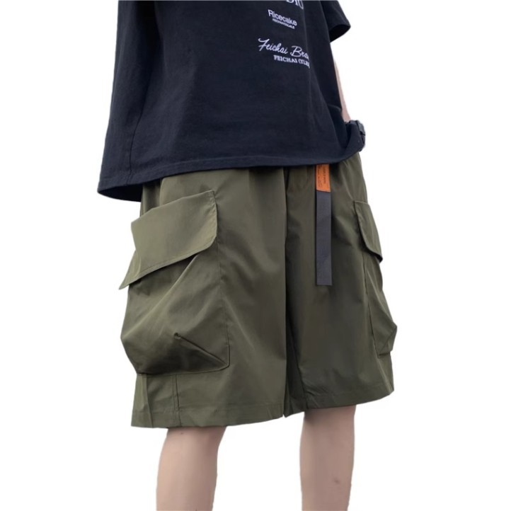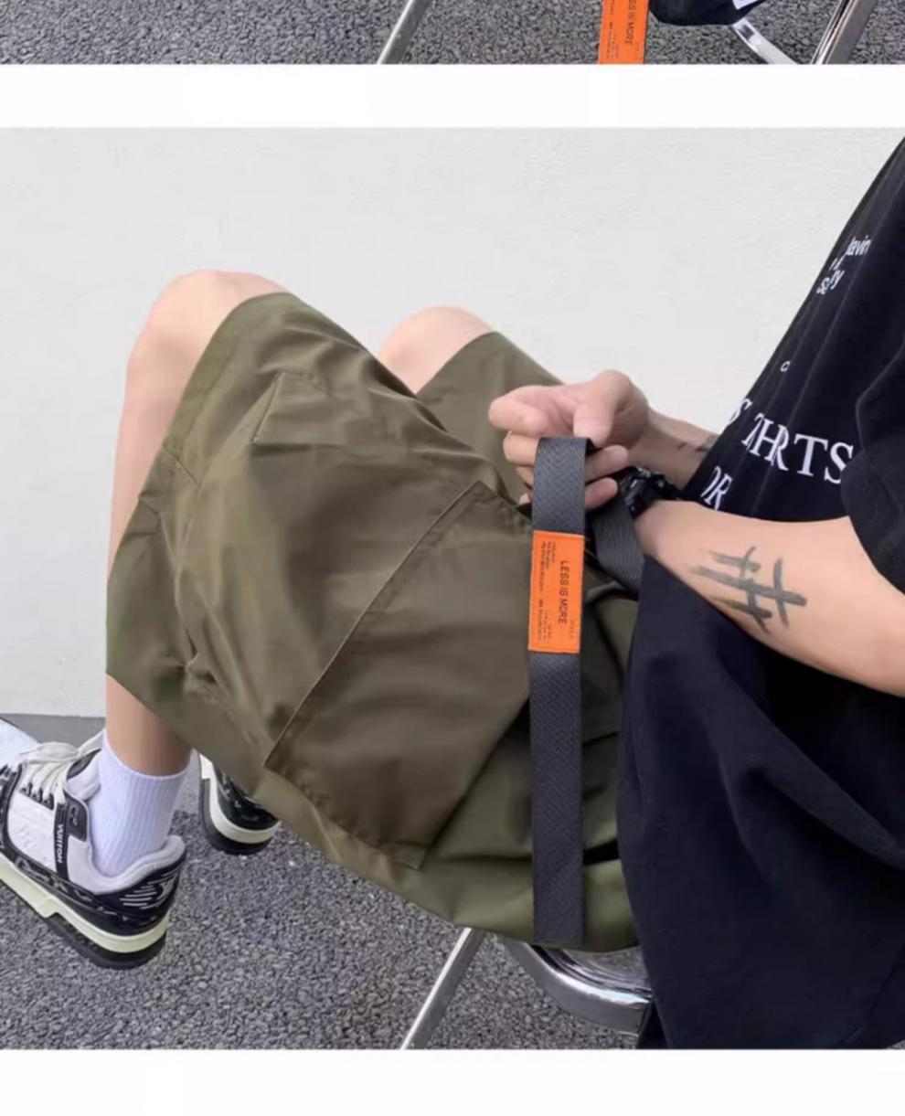 기능성 단색 포켓 툴링 반바지 남성 여름 얇은 느슨한 캐주얼 바지 미국 스타일 남성 5-바지