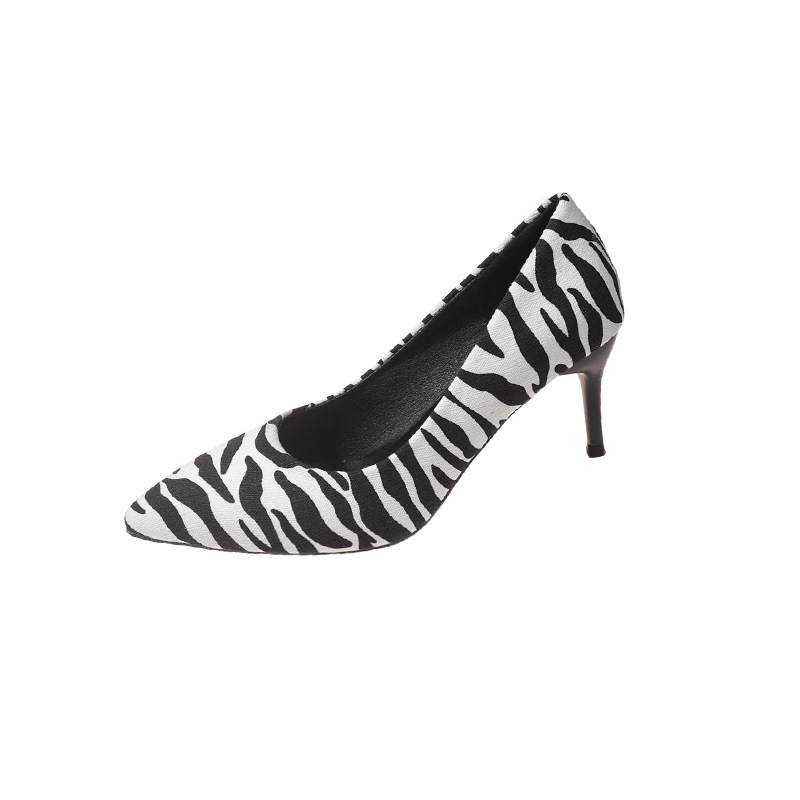대외 무역 플러스 사이즈 하이힐을 가리키며 여성의 새로운 2024 얕은 입 섹시한 우아한 연예인 여성 얼룩말 패턴 올매치 싱글 레이어 신발스토어 가기