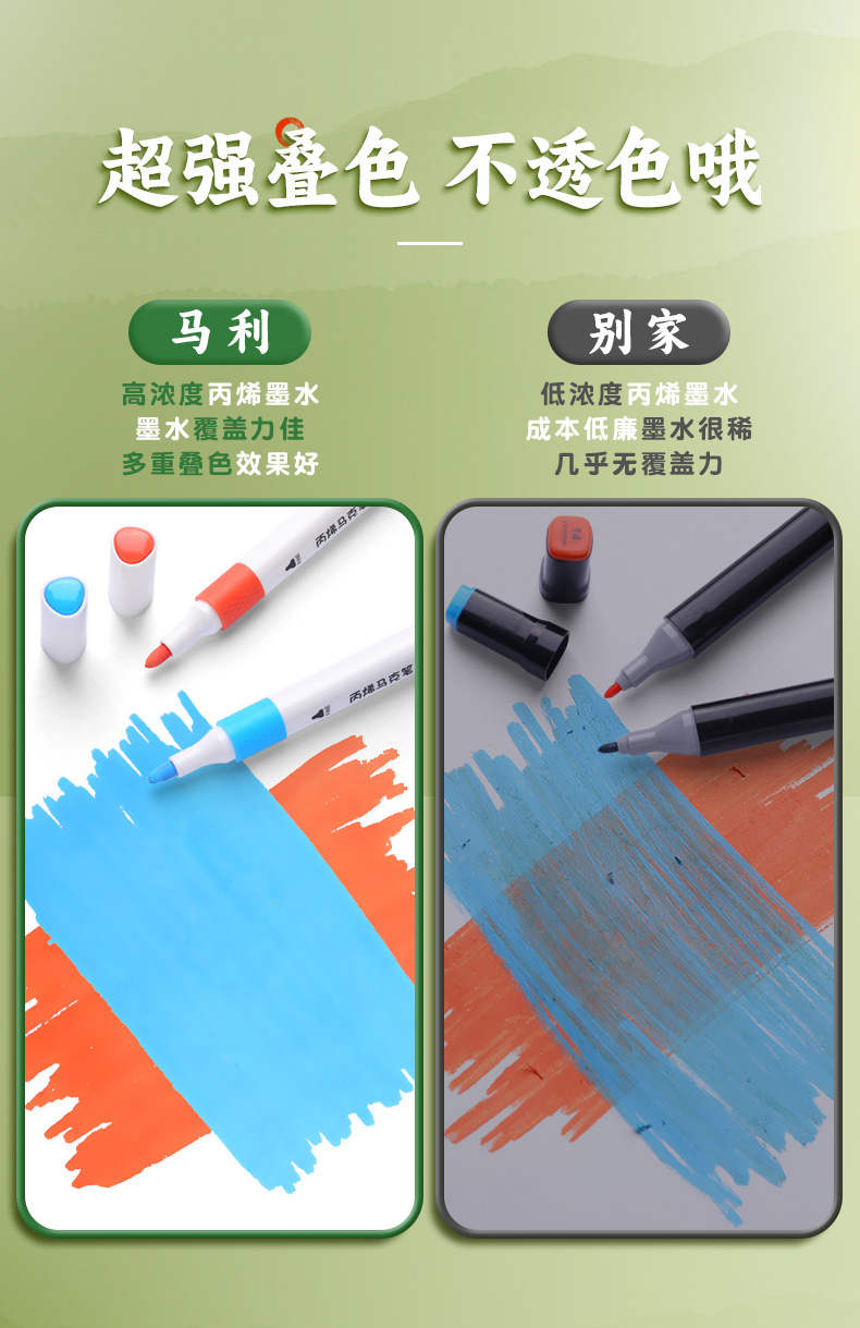 초등학교 학생을위한 Marley 브랜드 컬러 쌓을 수있는 아크릴 마커 펜 아트 불투명 소프트 헤드 펜 리필 어린이 세탁 용 소프트 백