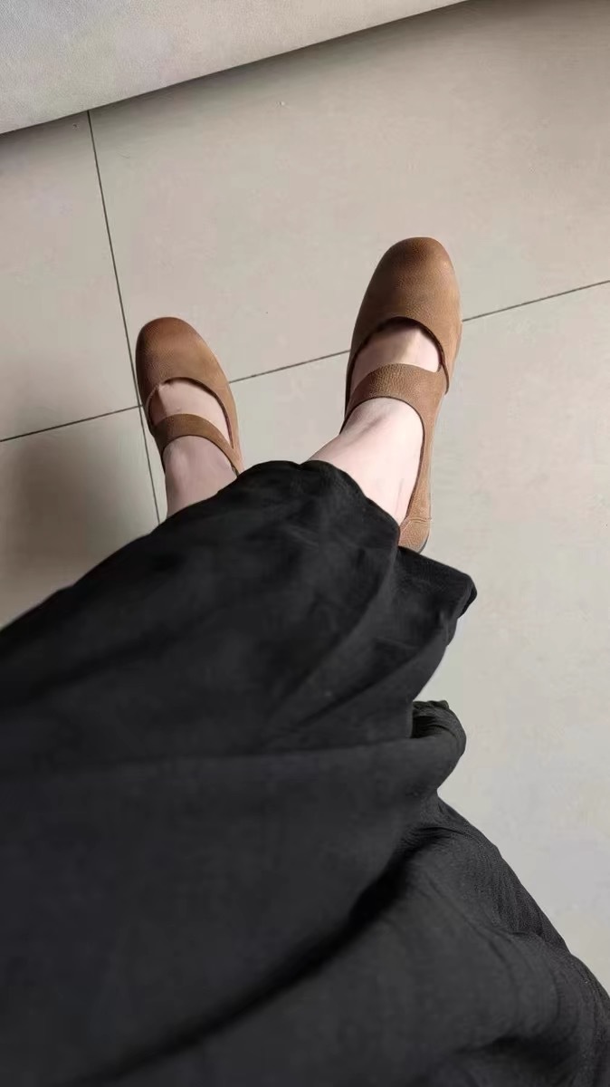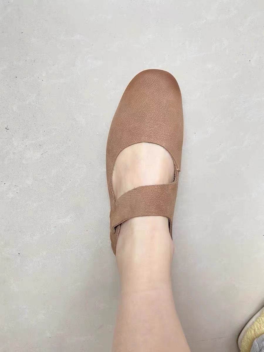 정품 가죽 빈티지 틈새 컬러 광택 라운드 발가락 플랫 발레 신발 여성 여름 및 가을 새로운 스타일 한 캐릭터 벨트 메리 제인 싱글 레이어 신발스토어 가기