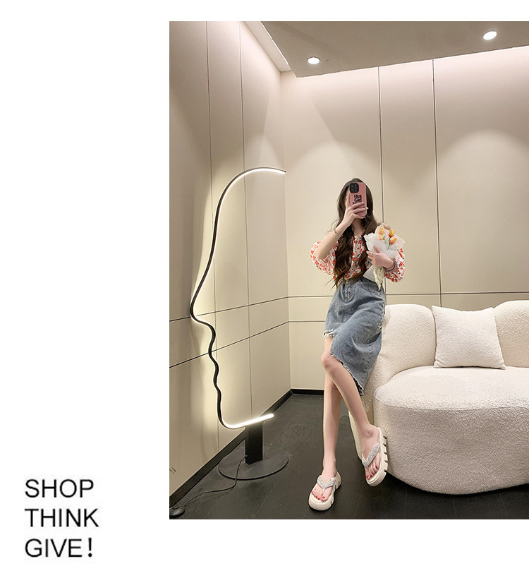 2023 여름 새로운 밝은 반짝이는 모조 다이아몬드 플립 플롭 여성용 하이 엔드 느낌 클립 온 머핀 여성 신발 트렌디 한 로퍼 샌들스토어 가기