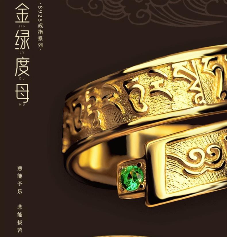3 개의 Mantuo Vajrayana 녹색 어머니 심장 저주 반지 S925 실버 골드 도금 연꽃 마스터 심장 저주 shurangama 저주 반지 팔찌스토어 가기
