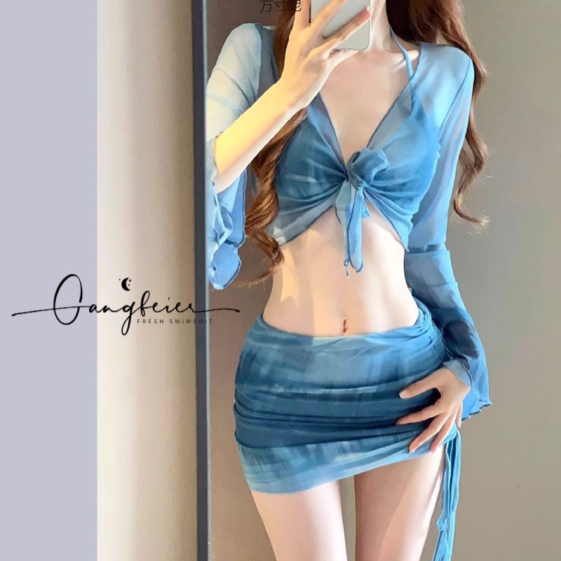 비키니 수영복 여성 2024 년 새 해변 휴일 4 피스 세트 보수적 인 분할 수영복 스파 아마존스토어 가기