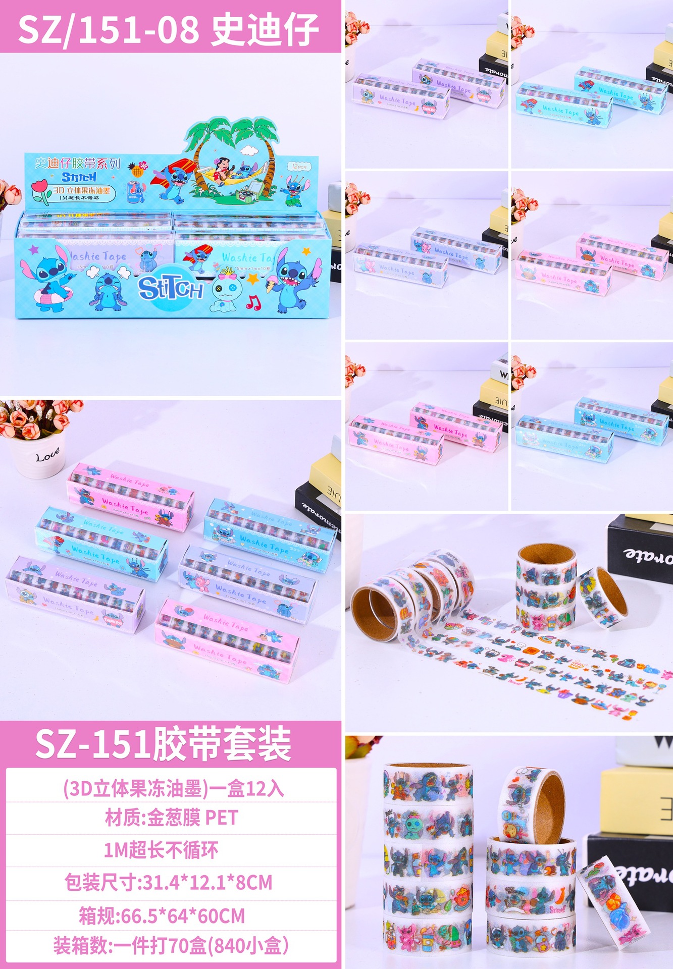 10롤 PET 무광 핸드북 테이프 스티커 어린이 상품 선물 만화 DIY 핸드북 장식 재료 스티커스토어 가기