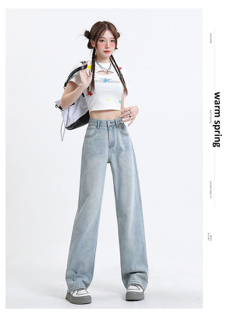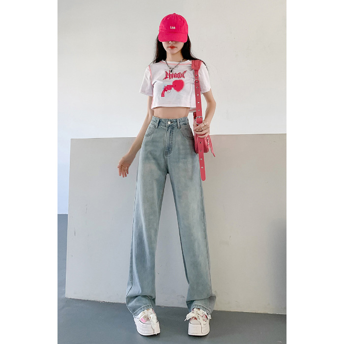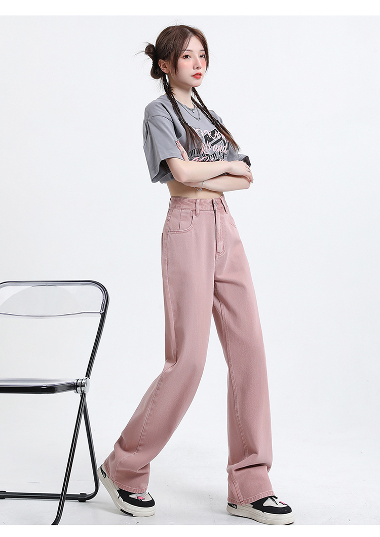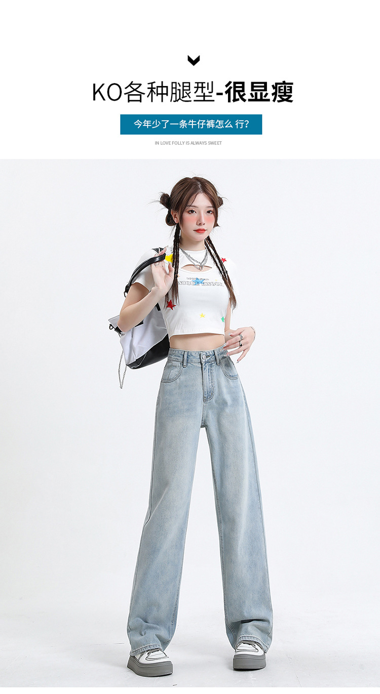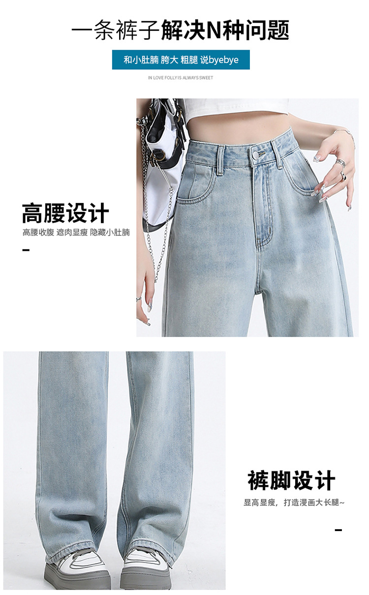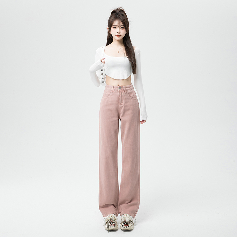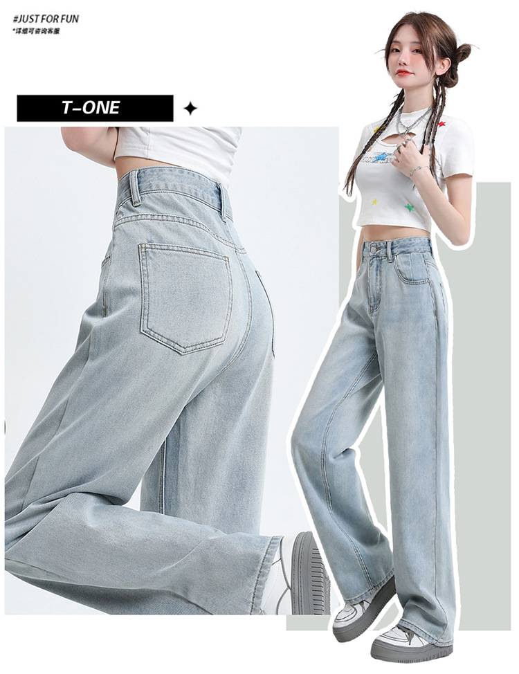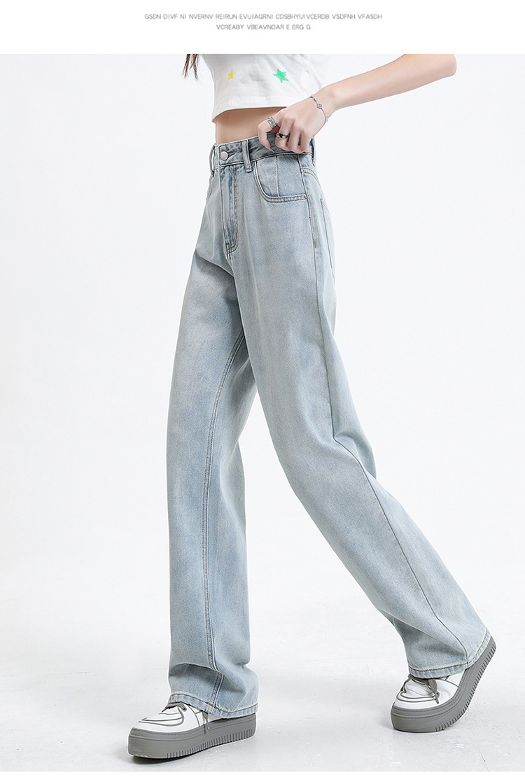 좁은 넓은 다리 바지 여성용 높은 허리 스트레이트 작은 남자 2024 여름 새로운 느슨한 슬리밍 라이트 컬러 데님 바지스토어 가기