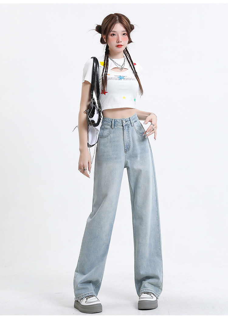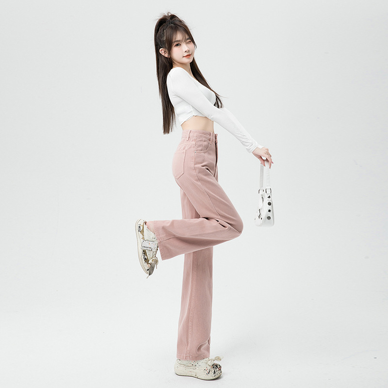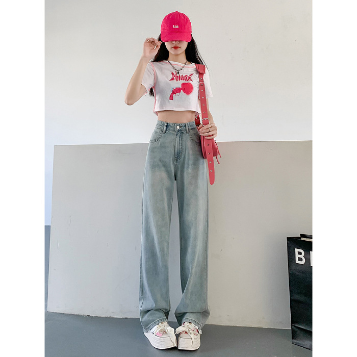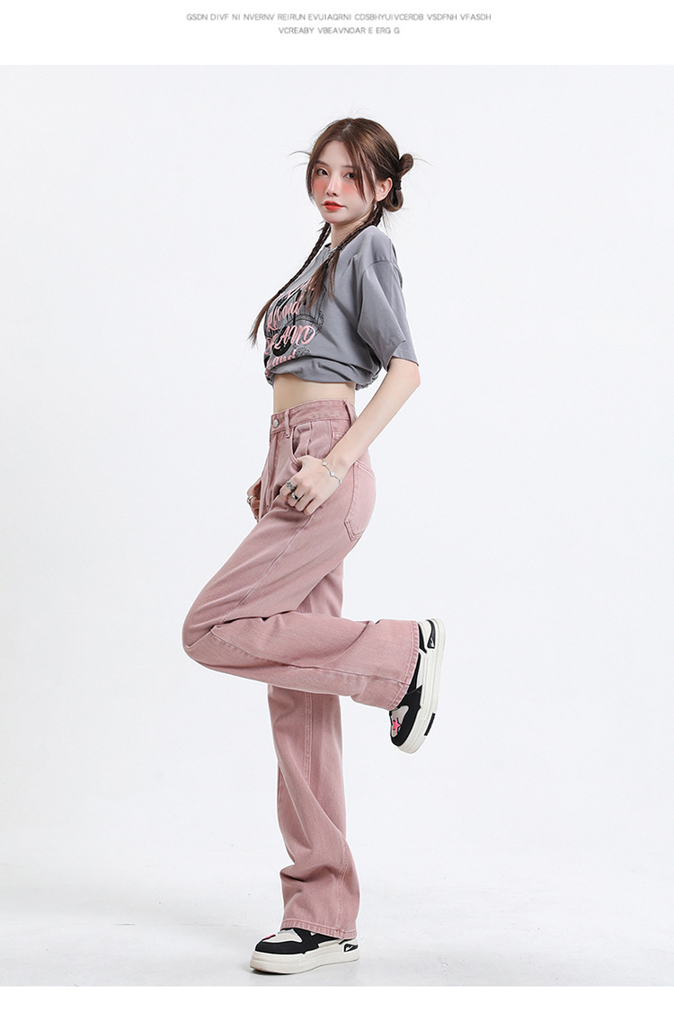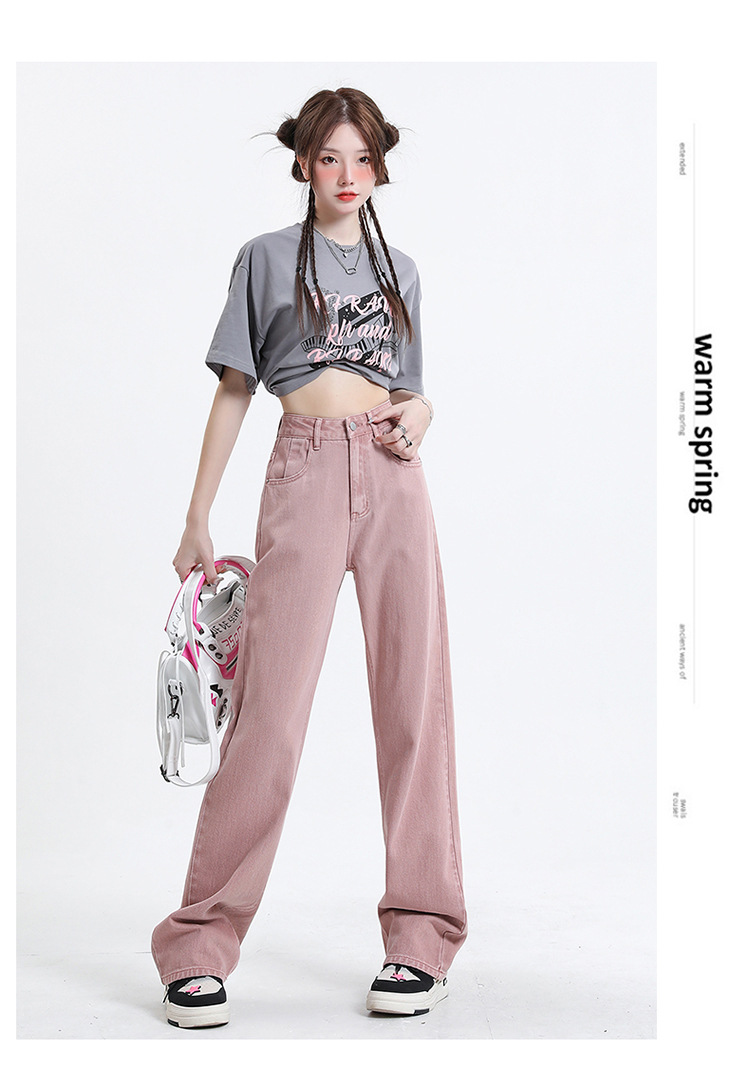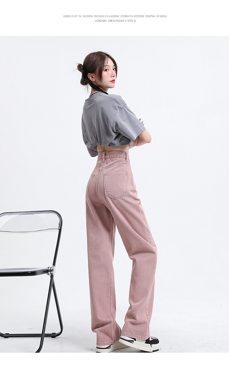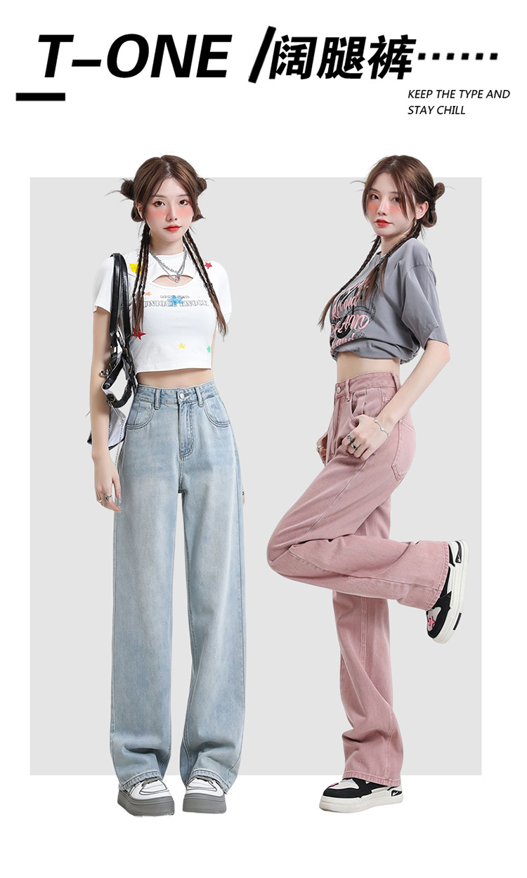 좁은 넓은 다리 바지 여성용 높은 허리 스트레이트 작은 남자 2024 여름 새로운 느슨한 슬리밍 라이트 컬러 데님 바지스토어 가기