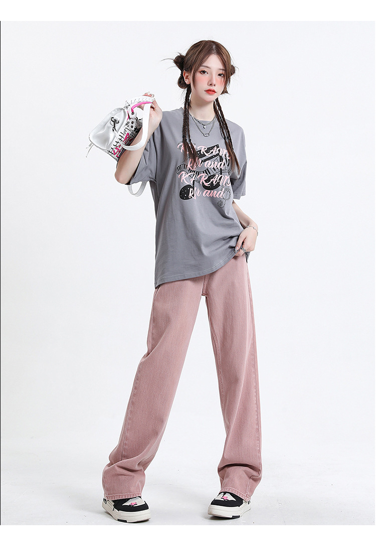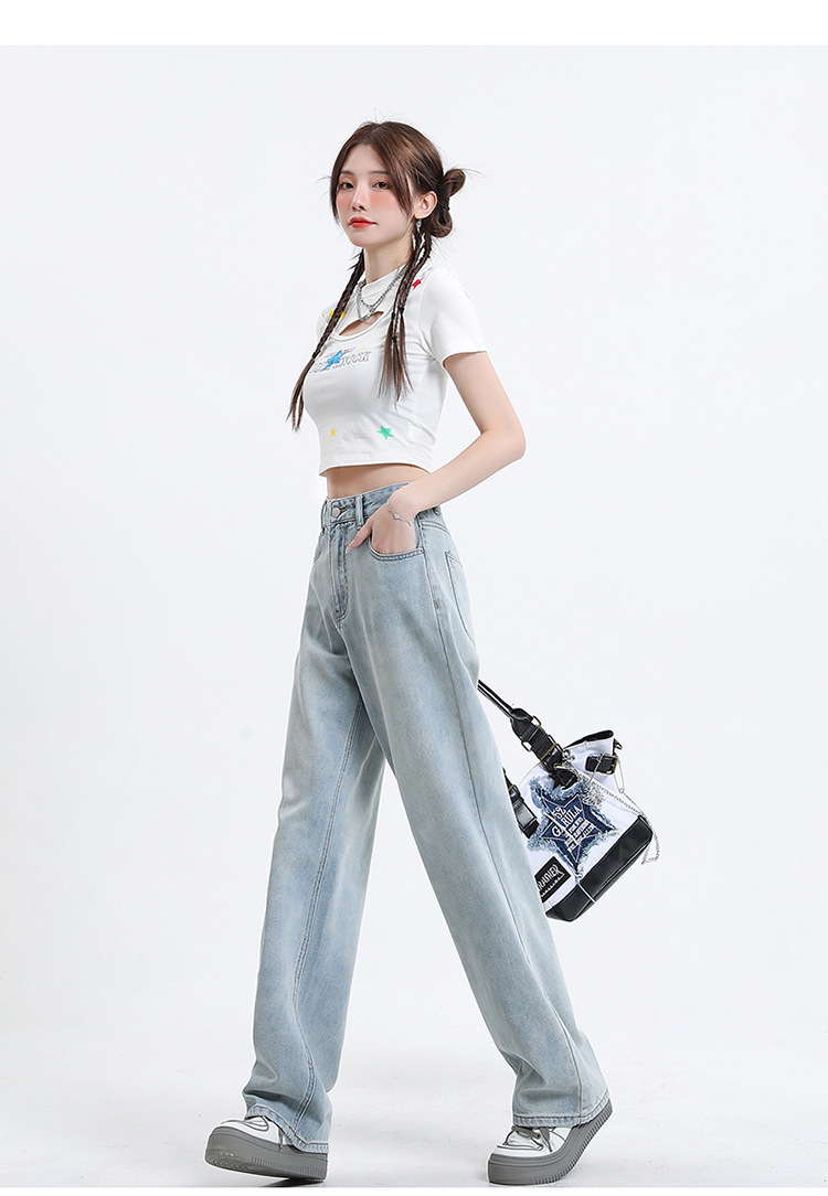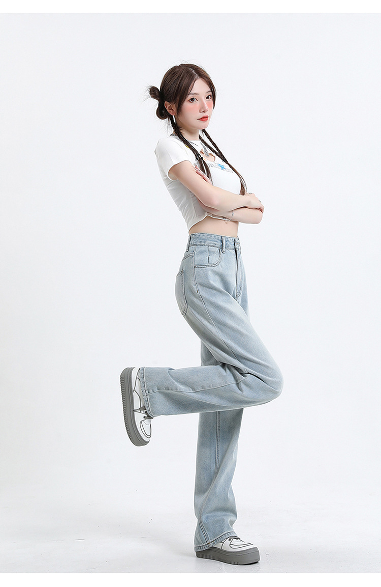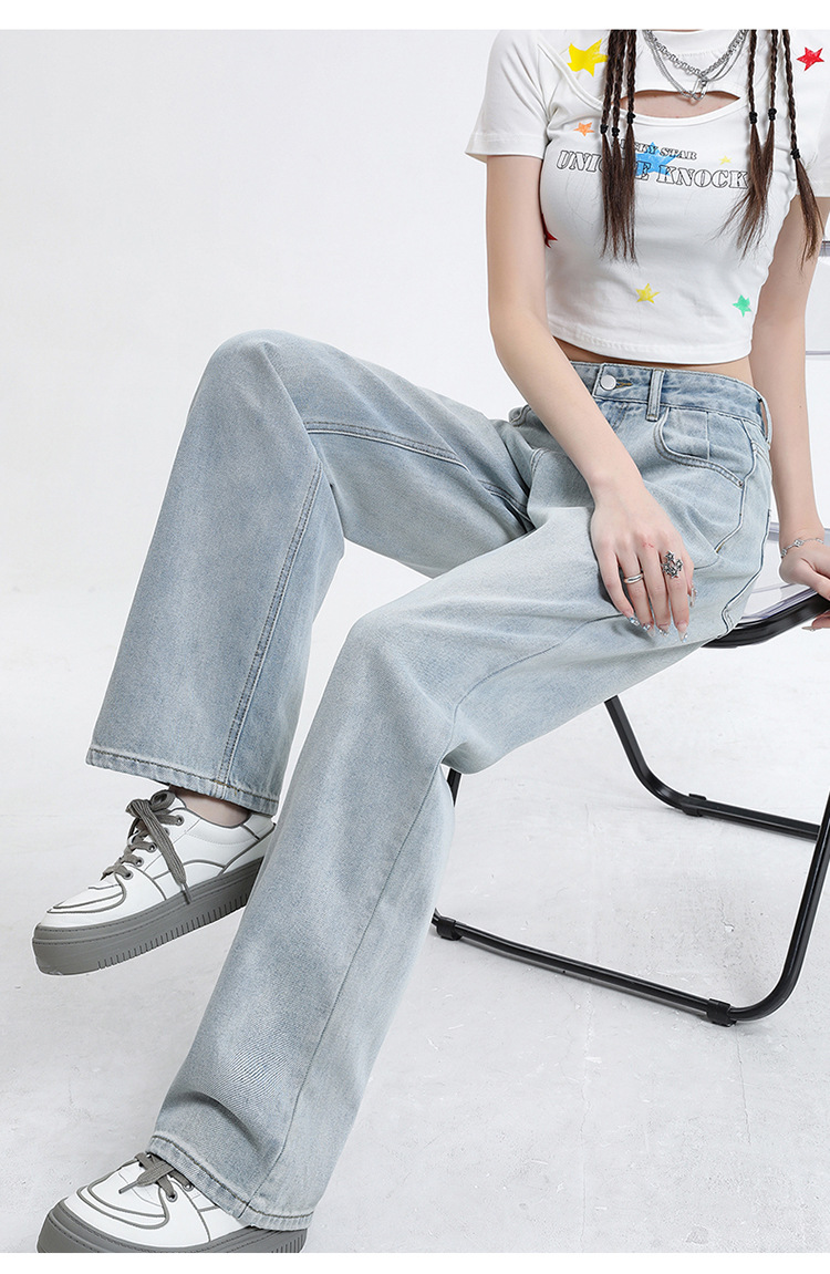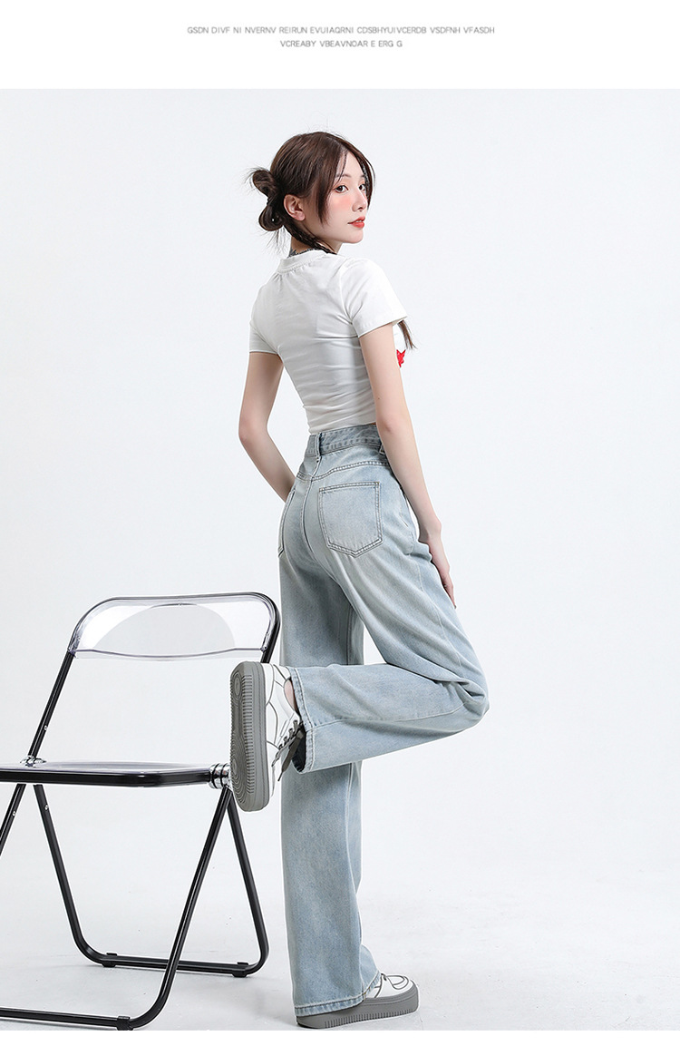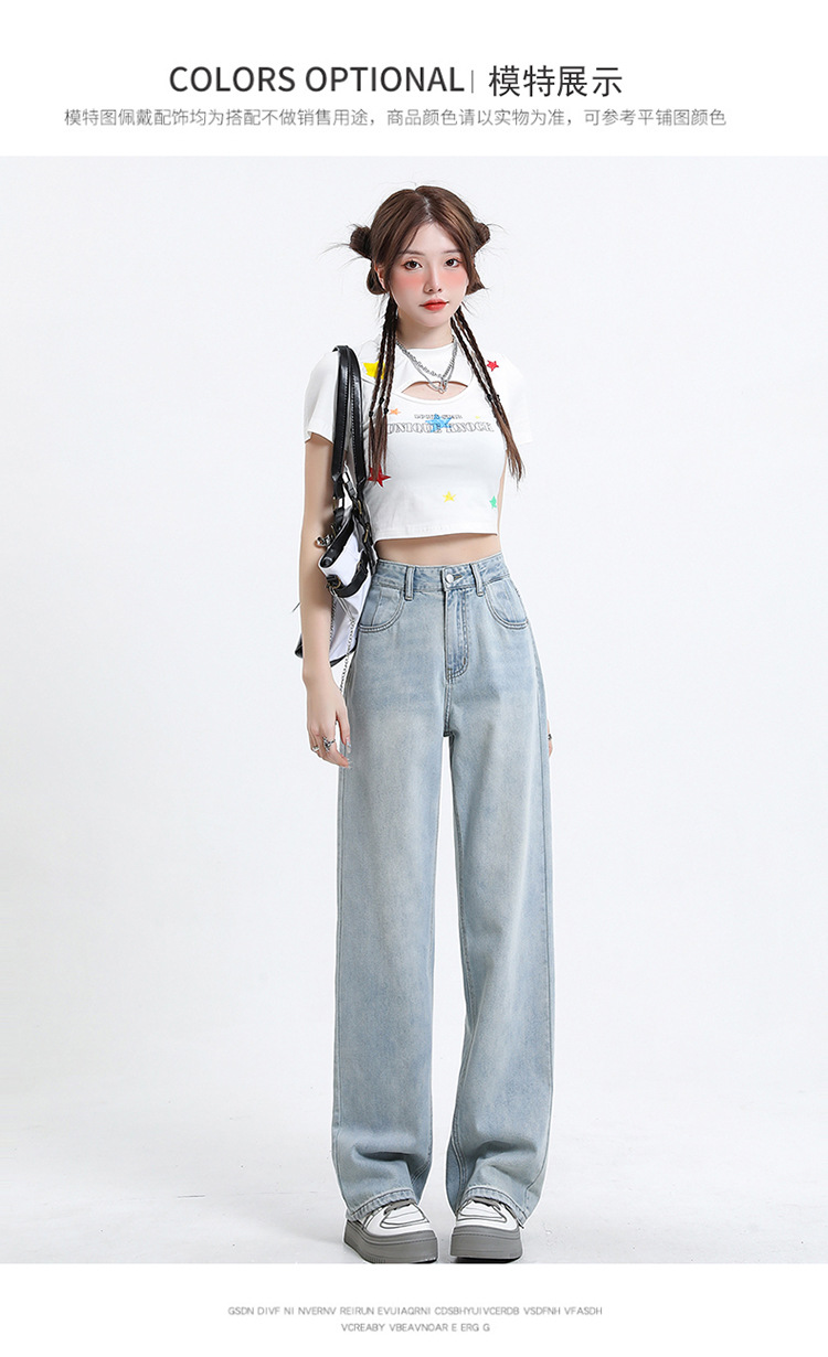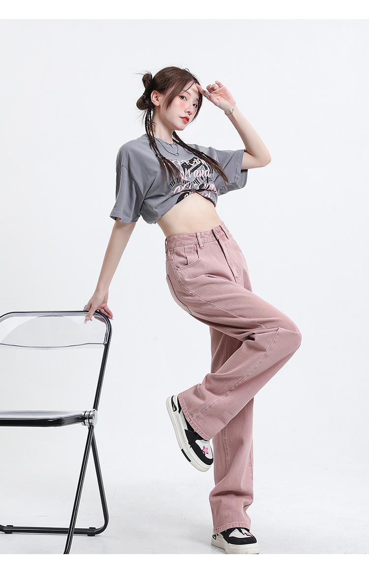좁은 넓은 다리 바지 여성용 높은 허리 스트레이트 작은 남자 2024 여름 새로운 느슨한 슬리밍 라이트 컬러 데님 바지스토어 가기