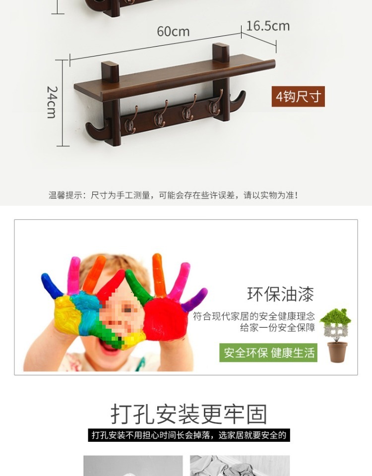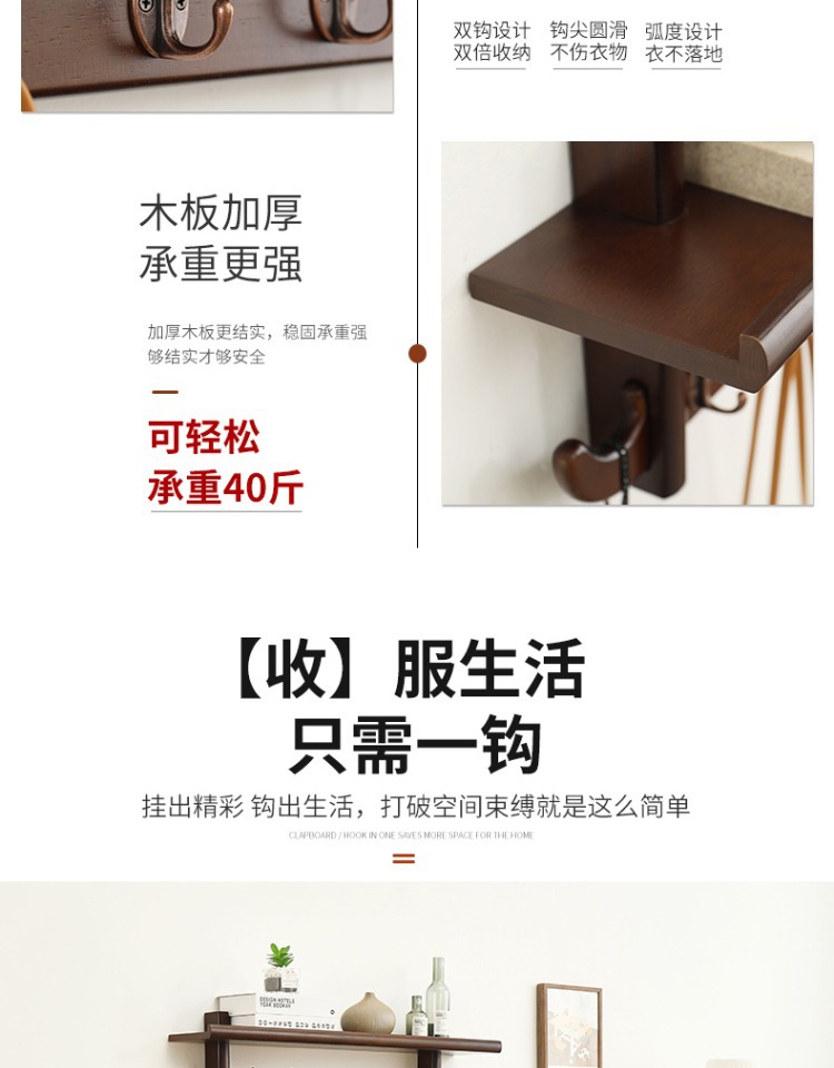 옷걸이 벽 매달려 벽 단단한 나무 저장 랙 거실 문 후면 다기능 옷 후크 침실 창조적 인 옷 새로운