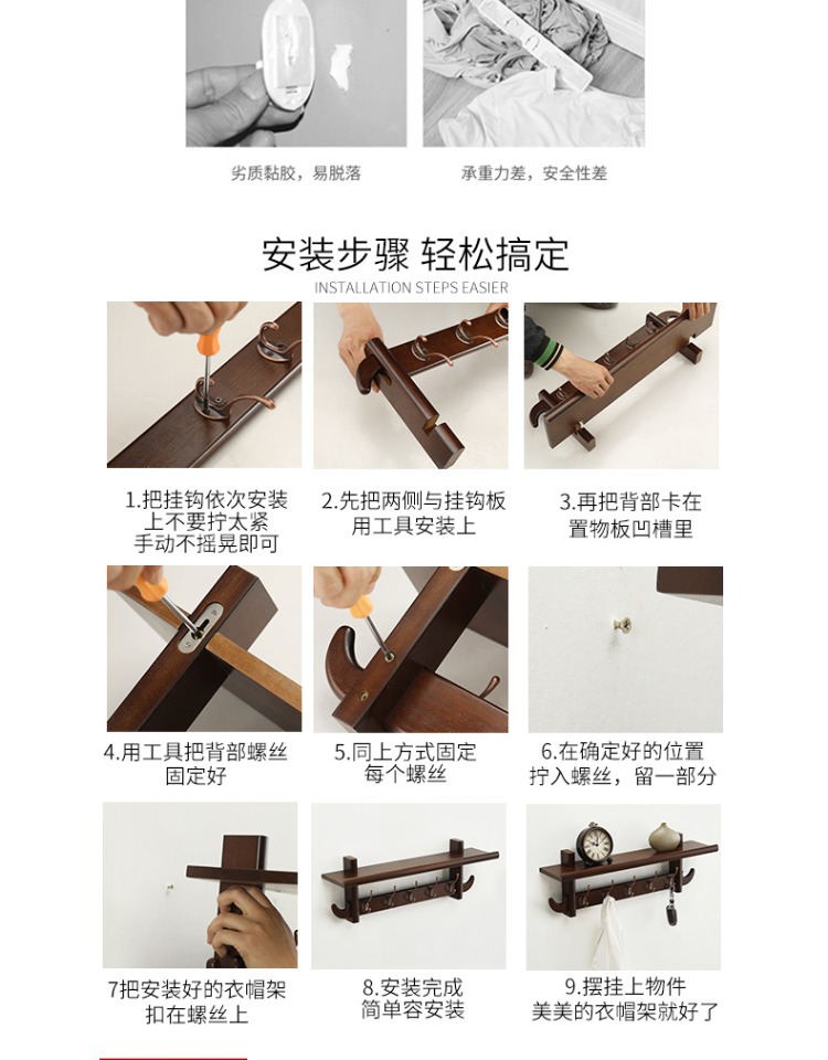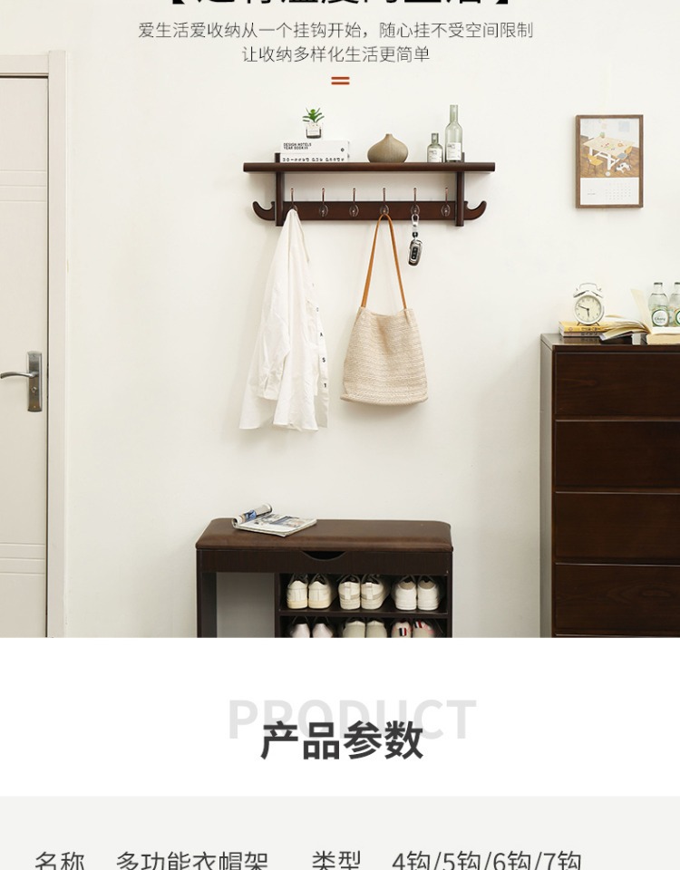 옷걸이 벽 매달려 벽 단단한 나무 저장 랙 거실 문 후면 다기능 옷 후크 침실 창조적 인 옷 새로운스토어 가기