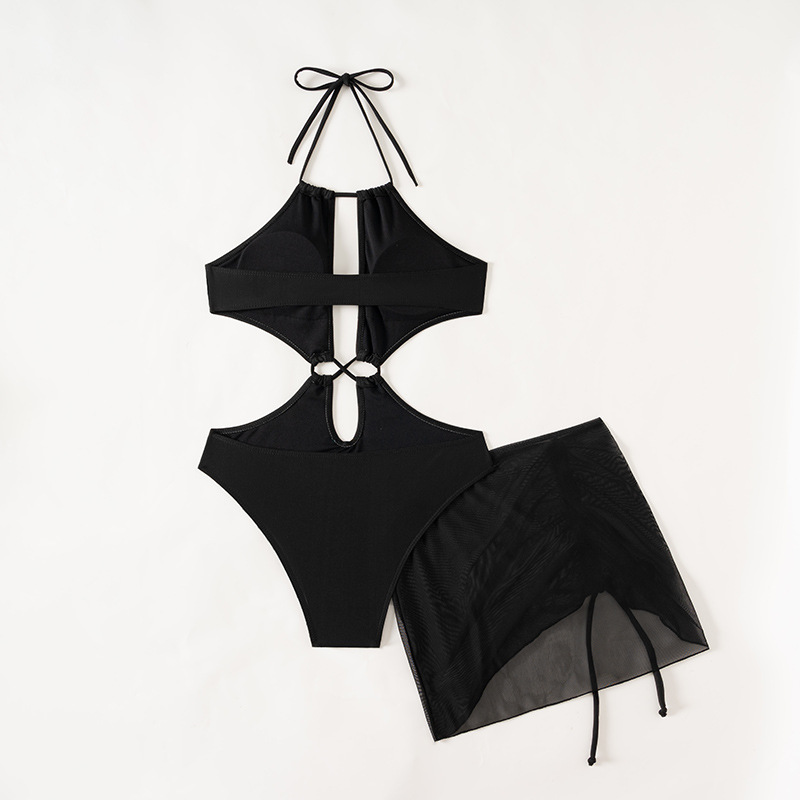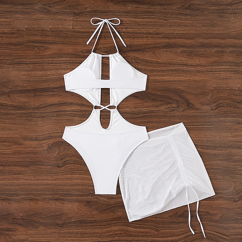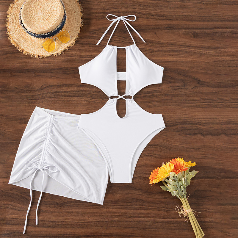 2024년 신상 원피스 수영복, 단색 유럽풍 섹시 비키니, 망사 스커트 포함, 해외 아마존 수영복