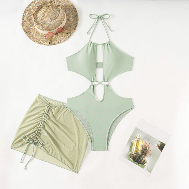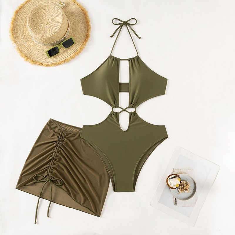2024년 신상 원피스 수영복, 단색 유럽풍 섹시 비키니, 망사 스커트 포함, 해외 아마존 수영복스토어 가기
