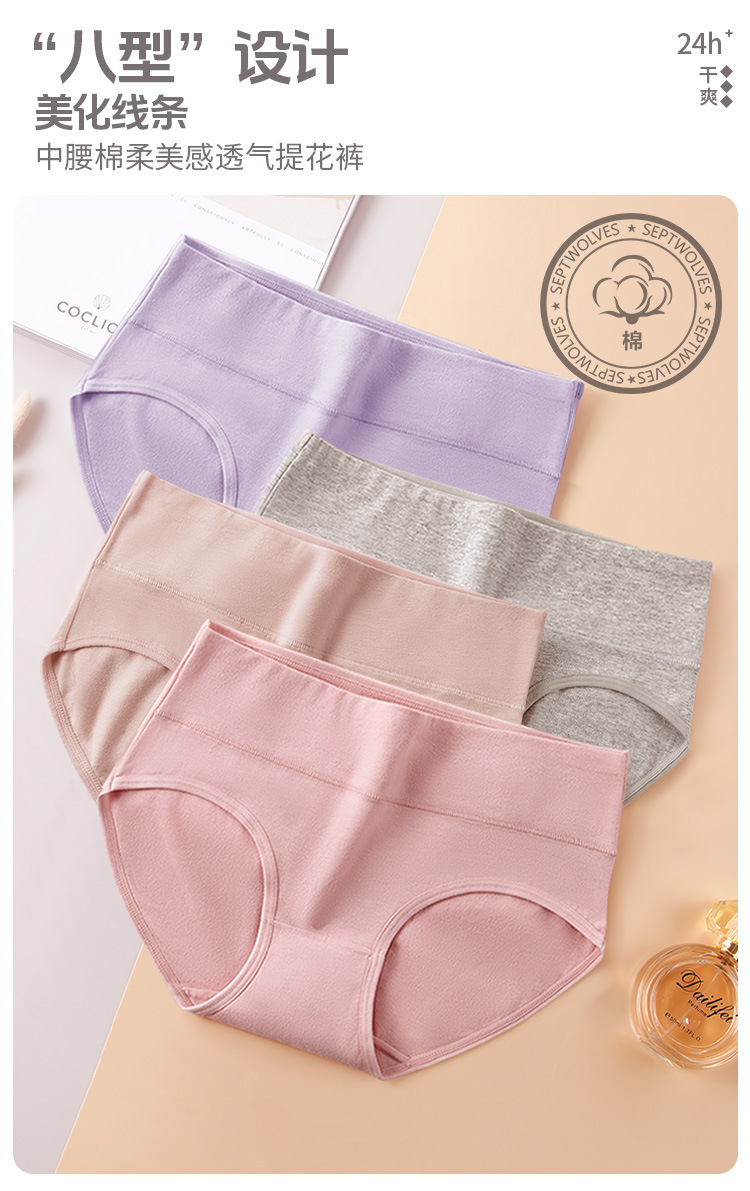 속옷 여성의 중간 허리 여성 속옷 여성용 코튼 크로트 통기성 트림 플 반바지 플러스 사이즈 엉덩이 레드 통통녀