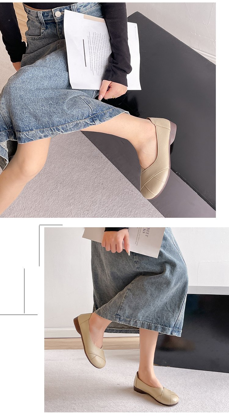 한국식 올매치 얕은 입 편평한 싱글 레이어 신발 여성 2024 봄 새로운 소프트 밀크 신발 콩 신발 게으른 슬립 온스토어 가기