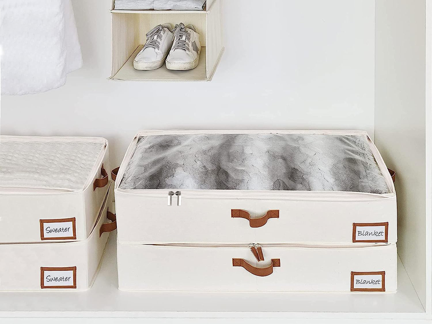 아마존 침대 바닥 보관 상자 가정용 옷 이불 습기 방지 보관 마감 상자 아래 침대 플랫 접이식 상자