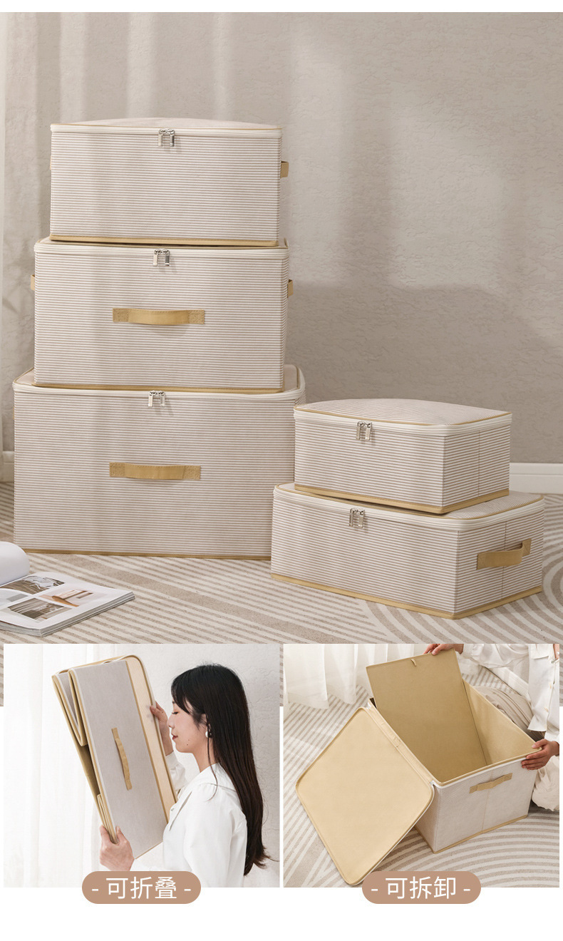 인쇄 된 부직포 줄무늬 저장 접이식 휴대용 마감 상자 대용량 의류 상자 곤충 방지 수분 방지스토어 가기
