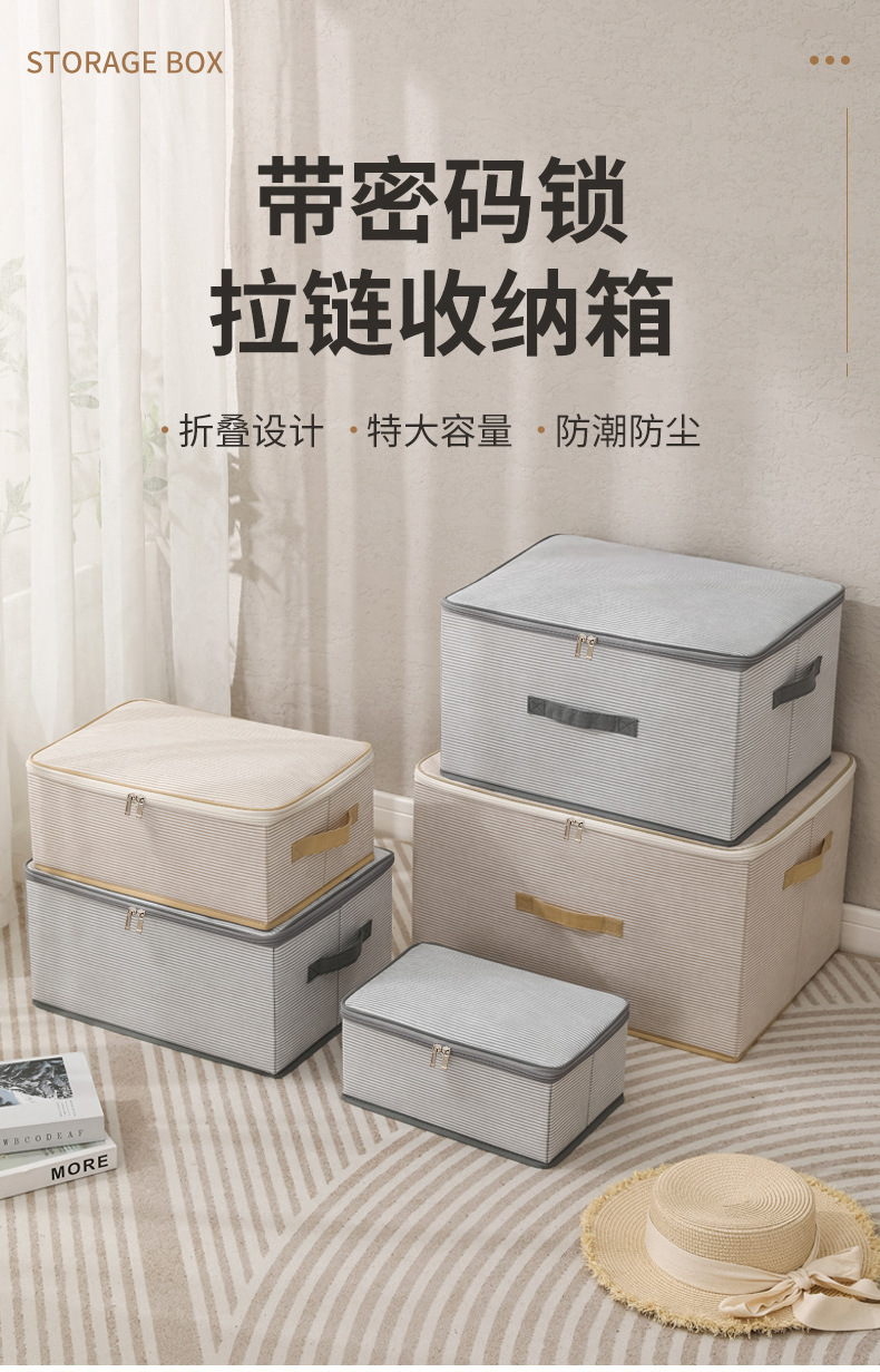 인쇄 된 부직포 줄무늬 저장 접이식 휴대용 마감 상자 대용량 의류 상자 곤충 방지 수분 방지