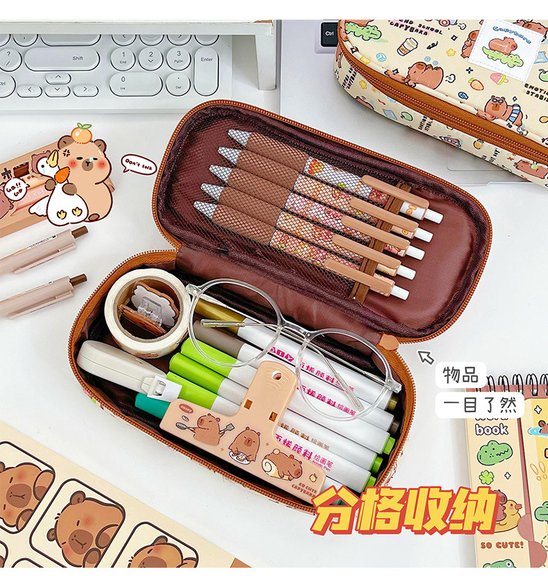 카피 발라 연필 케이스 귀여운 대용량 문구 가방 학생 연필 가방 만화 카피 바라 문구 케이스 연필 케이스스토어 가기