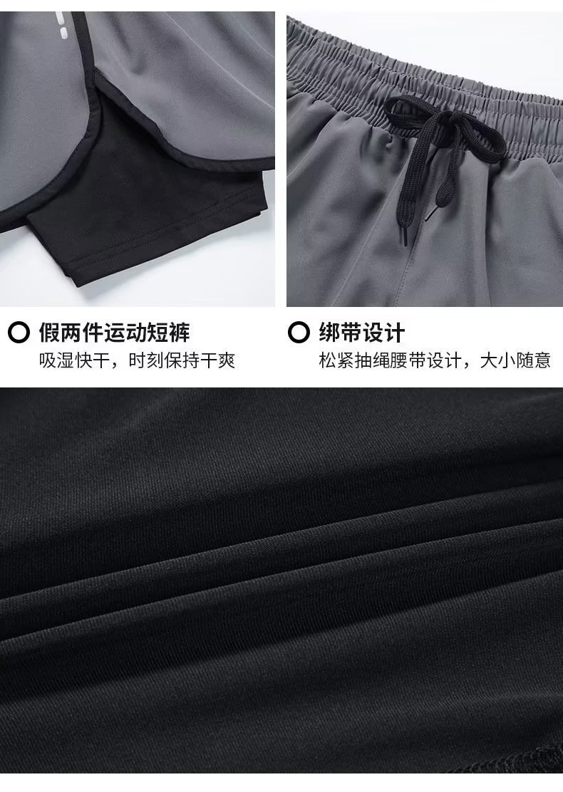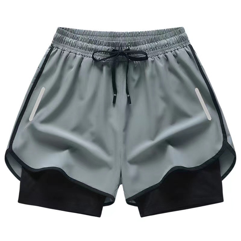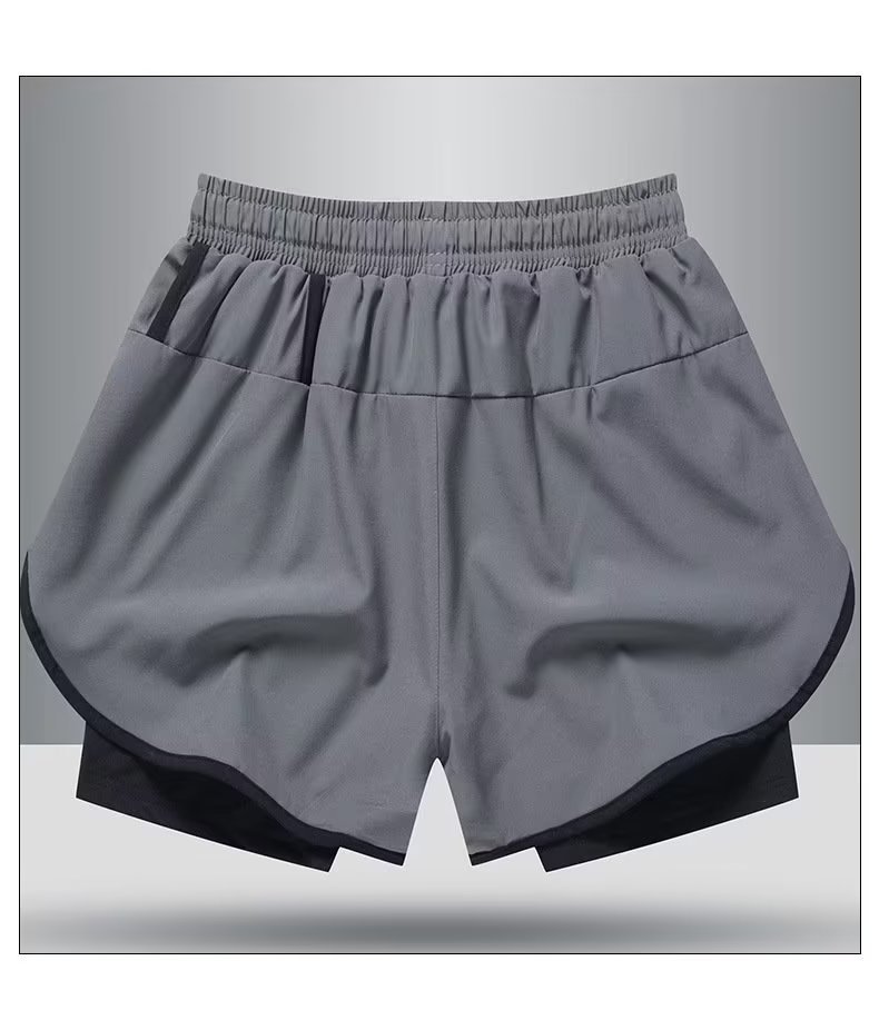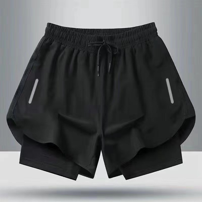 여름 새로운 더블 반바지 유럽과 미국의 근육 피트니스 수영 트렁크 스포츠 남자 캐주얼 바지 야외 스포츠 바지