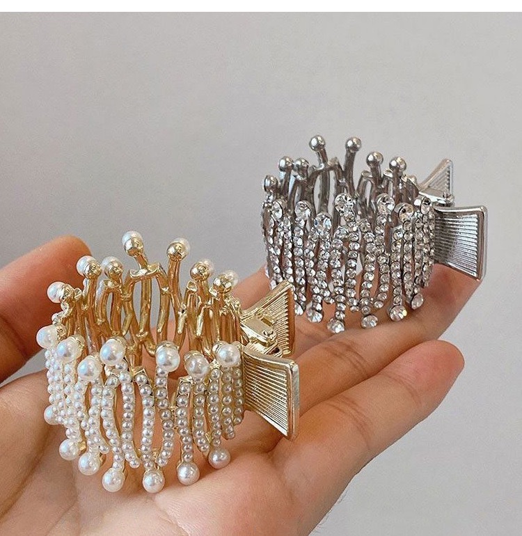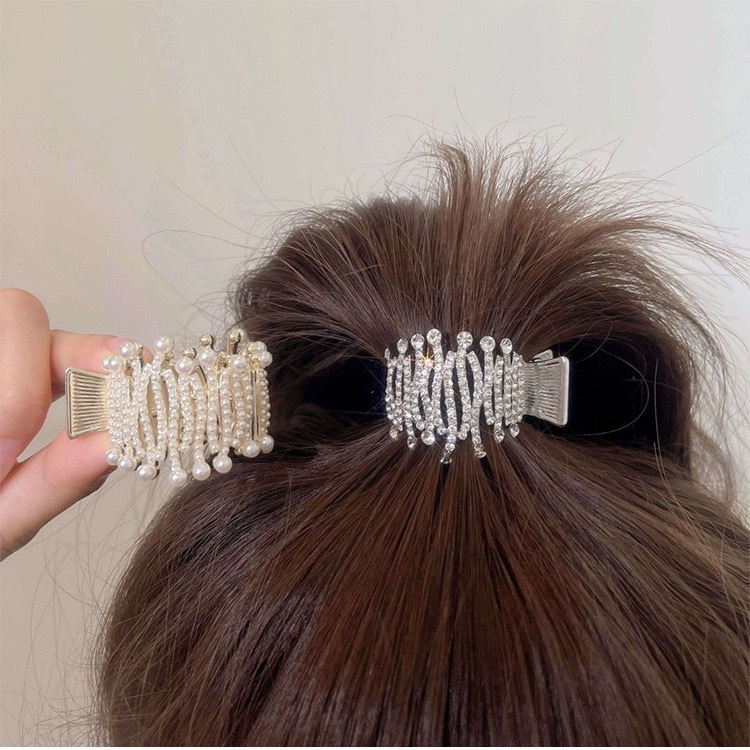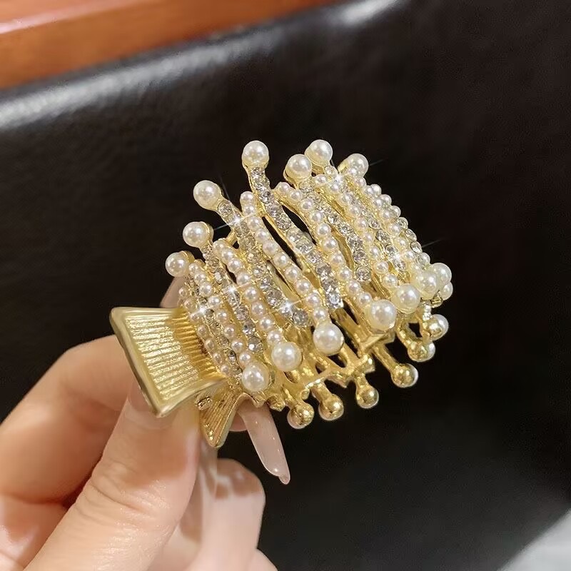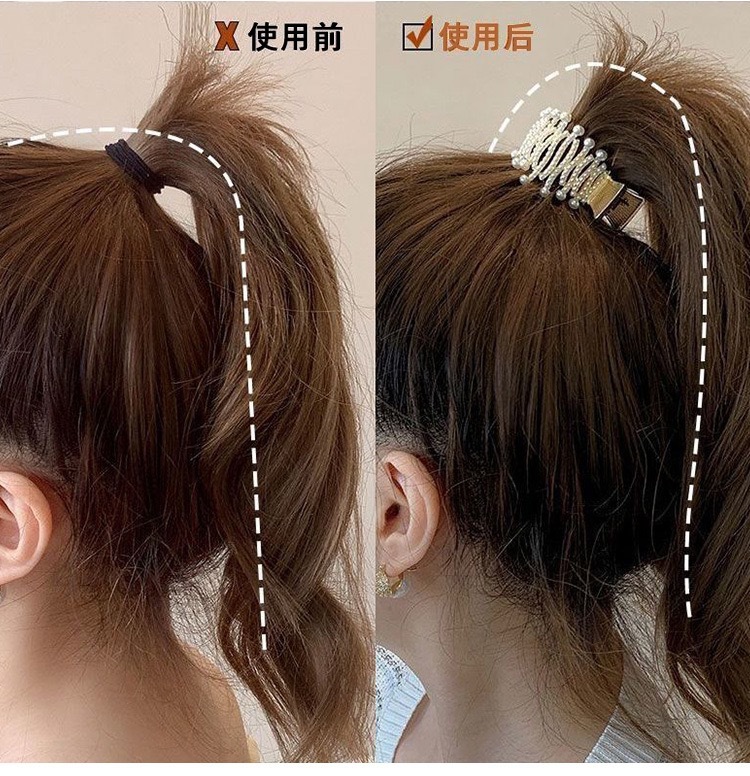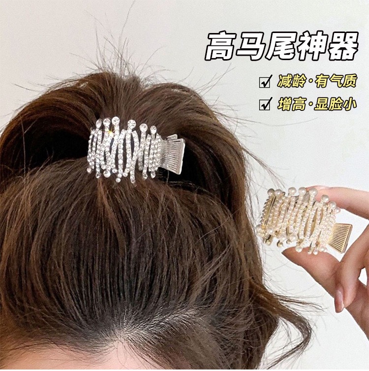 진주 다이아몬드 높은 포니 테일 클립 안티 붕괴 고정 아티팩트 포니 테일 클립 헤어핀 여성의 여름 볼 헤드 클로 클립 헤어핀