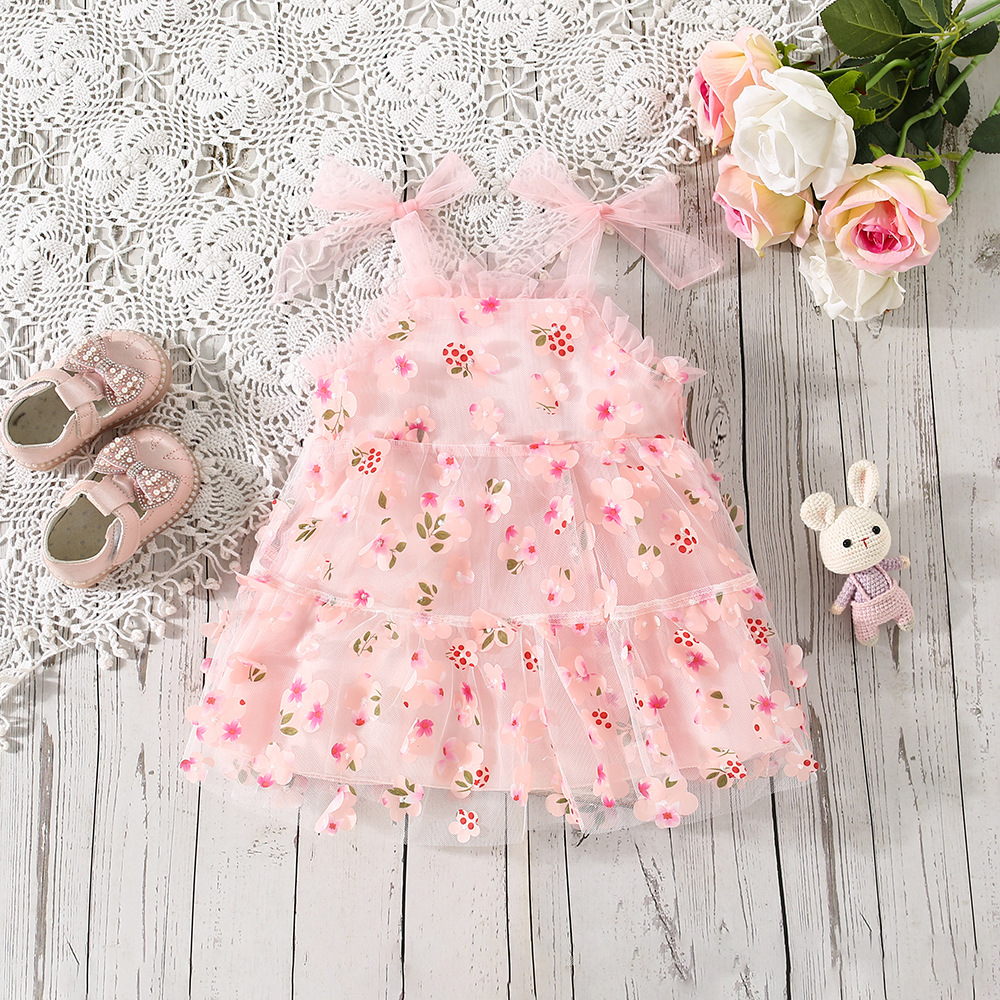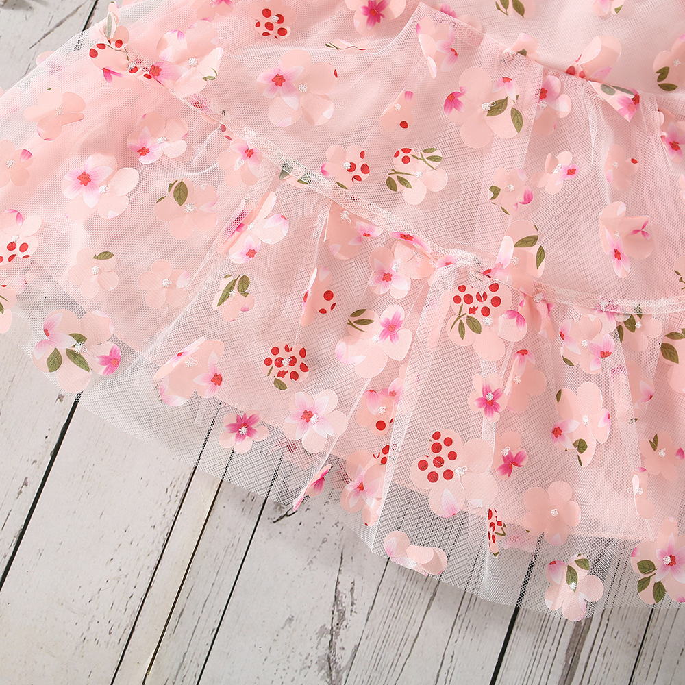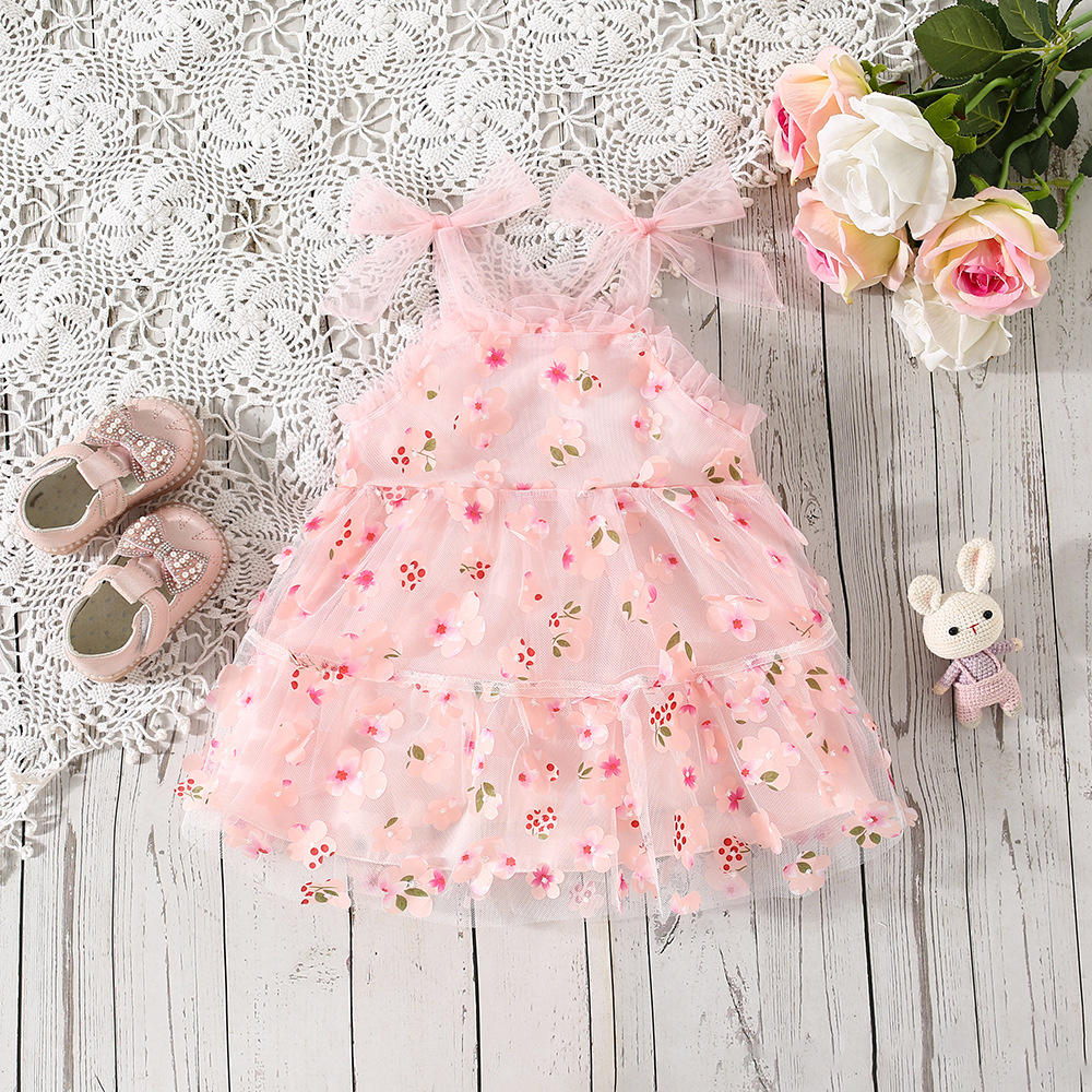 여름 새 소녀 전체 길이 꽃잎 활 슬링 거즈 스커트 여자 한국 스타일 메쉬 라자냐 원피스
