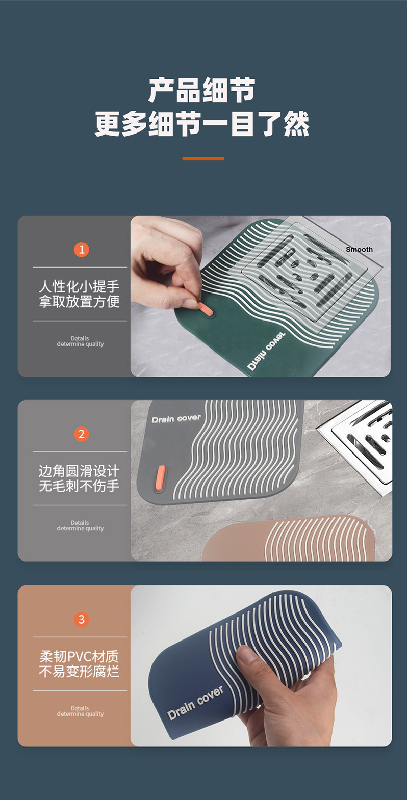 스퀘어 라인 플로어 드레인 커버 냄새 방지 매트 화장실 화장실 욕실 필터 헤어 주방 곤충 방지 실리콘 하수도