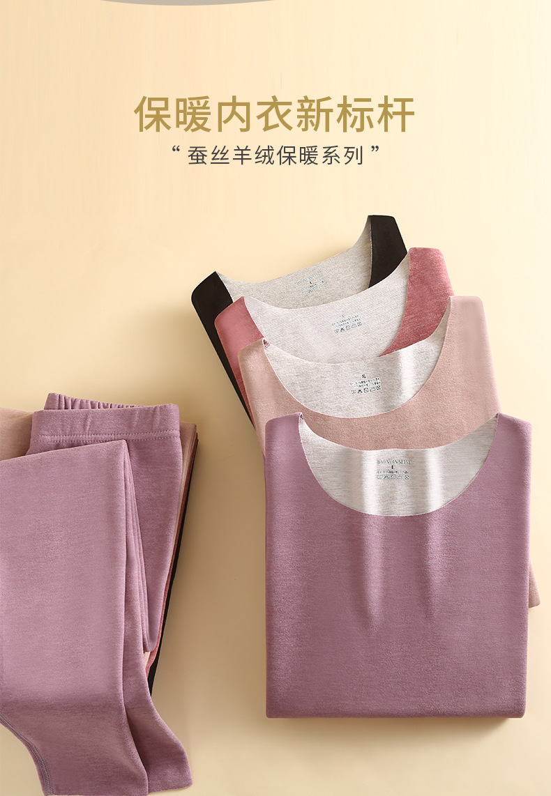 5A 항균 양모 실크 무봉제 라운드넥 가을옷 남녀 보온 속옷 세트 피부친화적 보온 세트