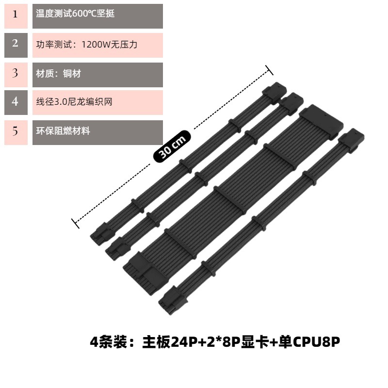컴퓨터 호스트 섀시 마더 보드 패키지 확장 라인 정렬 라인 24P CPU8P 그래픽 카드 8P 블랙 및 화이트 꼰 라인스토어 가기