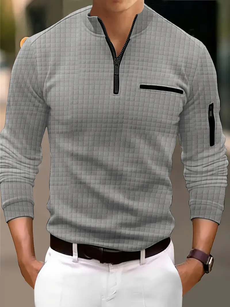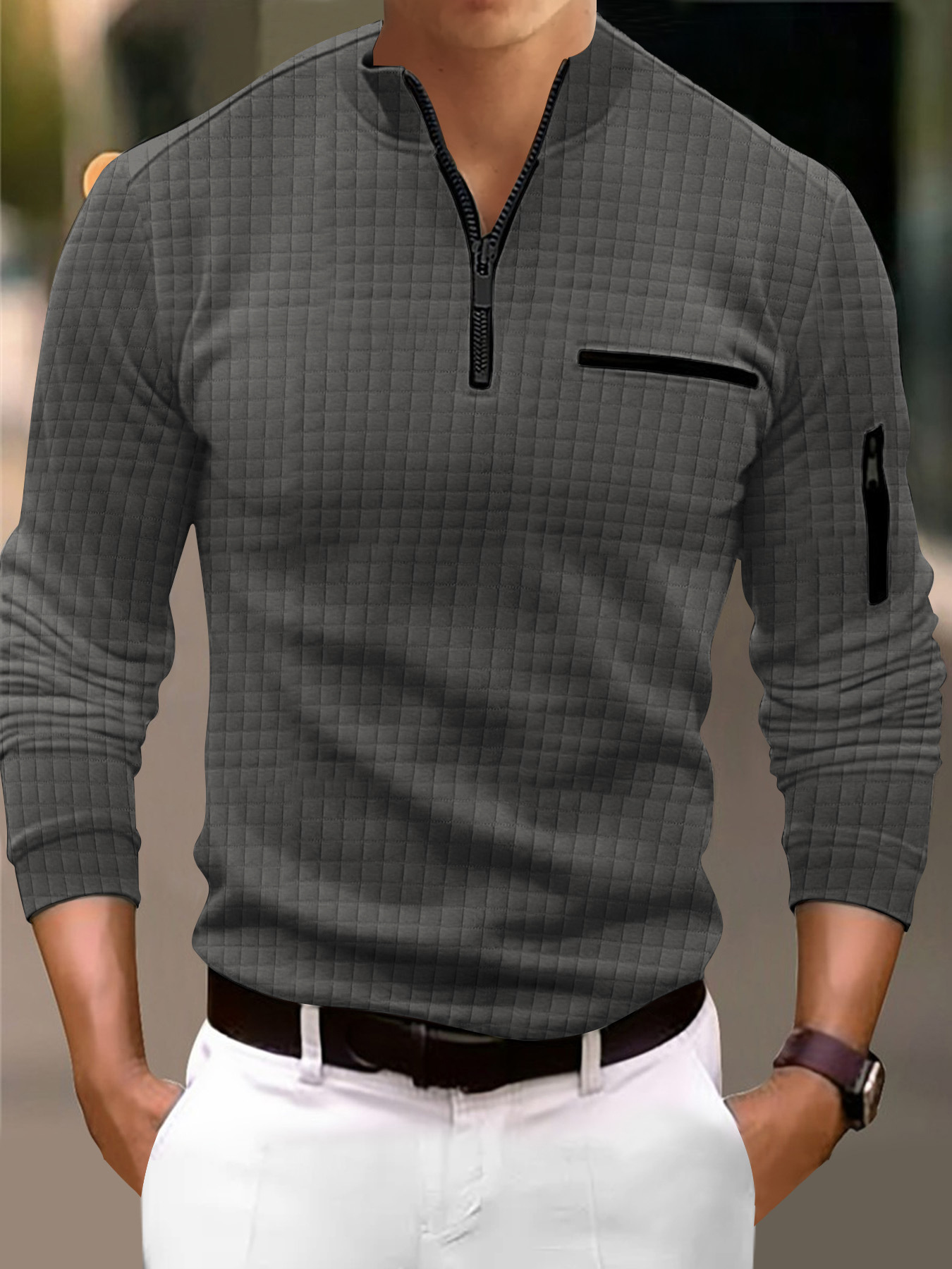 봄 가을용 남성 체크무늬 폴로셔츠, 팔 지퍼가 있는 스포츠 폴로셔츠, 지퍼 장식스토어 가기